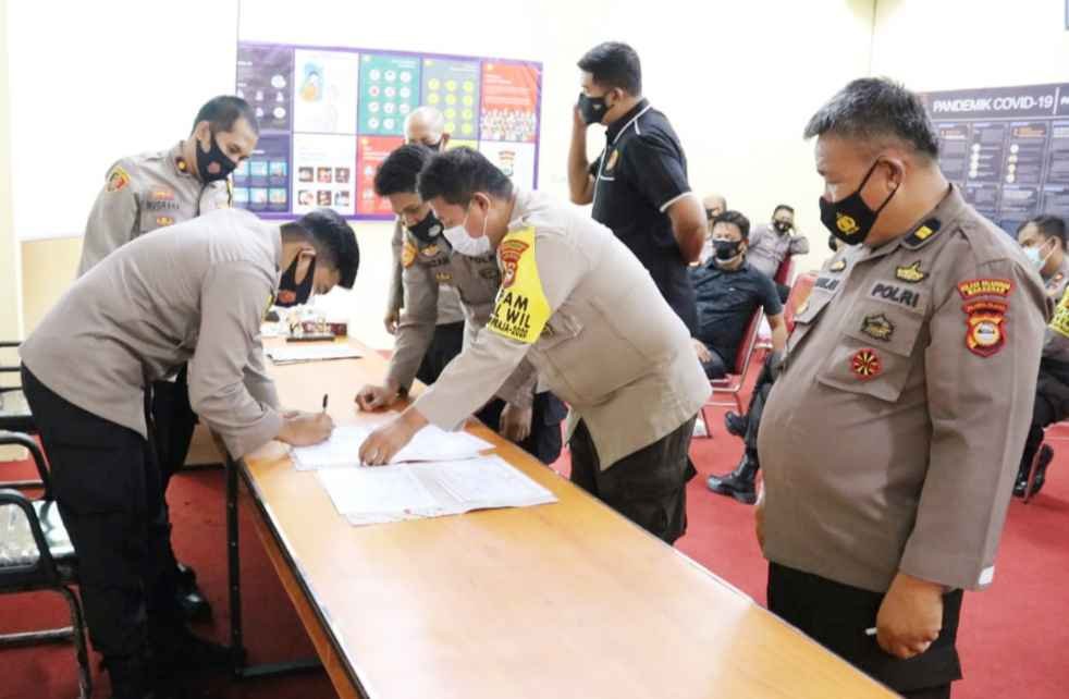 Polres Pelabuhan Makassar melakukan kegiatan Penandatanganan Pakta Integritas dan Penyerahan Daftar Isian Pelaksanaan Anggaran (DIPA) Tahun Anggaran (TA) 2021 yang berlangsung di Aula Mapolres Pelabuhan Makassar, Selasa (22/12/2020).