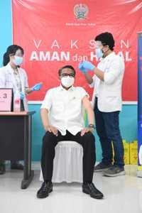 Gubernur Sulawesi Selatan, Prof HM Nurdin Abdullah mengikuti proses vaksin kedua, dari dua tahap proses pembentukan daya tahan tubuh untuk melawan virus Covid-19, Jumat (5/2/2021).Vaksin pertama dilakukan 22 Januari 2021.