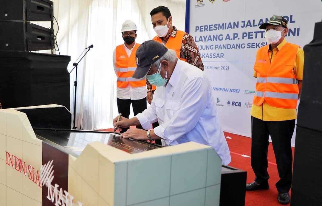 Jalan Tol Layang Pettarani di Kota Makassar kini resmi dioperasikan setelah penandatanganan prasasti oleh Menteri Pekerjaan Umum dan Perumahan Rakyat (PUPR), Basuki Hadimuljono di Tol Layang Pettarani, Kamis (18/3/2021).