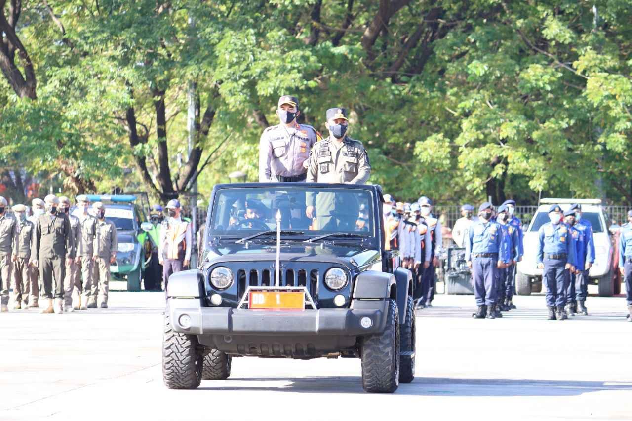 "Mengawali Apel Gelar Pasukan, Andi Sudirman menggunakan mobil Jeep didampingi Kapolres AKBP Kadarislam melakukan pemeriksaan pasukan. Dilanjutkan penyematan pita tanda operasi disisi kiri lengan pakaian perwakilan Polri, TNI, Dishub dan Satpol-PP," sebut Paur Subbag Humas, Kamis (06/05/2021).