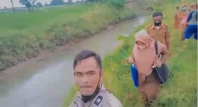 Seperti yang terlihat di lakukan saat Tim Vaksinator dari PKM Kampili bersama Bhabinkamtibmas serta pemerintah setempat dengan cara berjalan kaki sepanjang 1 KM dengan menyusuri pinggiran pematang sawah dan sungai saat ingin melakukan vaksinasi secara door to door ke rumah warga yang berada di Dusun Rajaraja Desa Bungaejaya, Kecamatan Pallangga Kabupaten Gowa, Senin (15/2).
