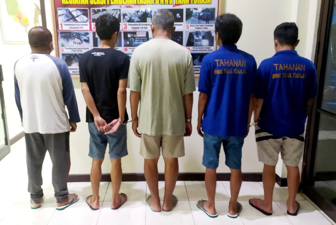 Lima pelaku Pengguna Narkotika diringkus Tim Badan Narkotika Nasional (BNN) Kabupaten Tana Toraja, Penangkapan berawal dari laporan masyarakat, bahwa di wilayah sekitar Lingkungan Batulelleng Kecamatan Rantepao, Kabupaten Toraja Utara sering terjadi penyalahgunaan narkotika.