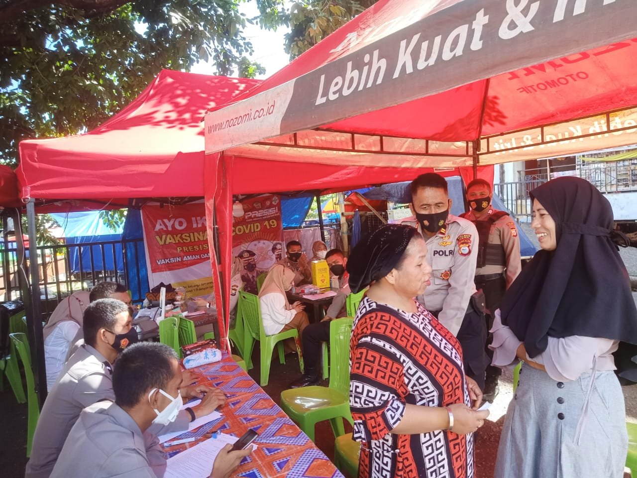 Dalam kegiatan vaksinasi para personil juga turun menemui para pengunjung dan pedang pasar dan sosialisasikan kegiatan vaksinasi yang telah digelar didepan pasar.