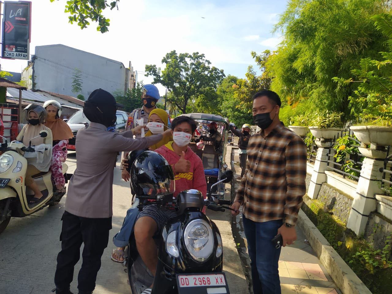 Dalam operasi yang dipimpin Kasat Reskrim AKP. Boby Rachman para personil menghentikan kendaraan warga yang melintas tanpa memakai masker dan diberikan teguran lalu di edukasi sekaligus mengarahkan menyiapkan masker.