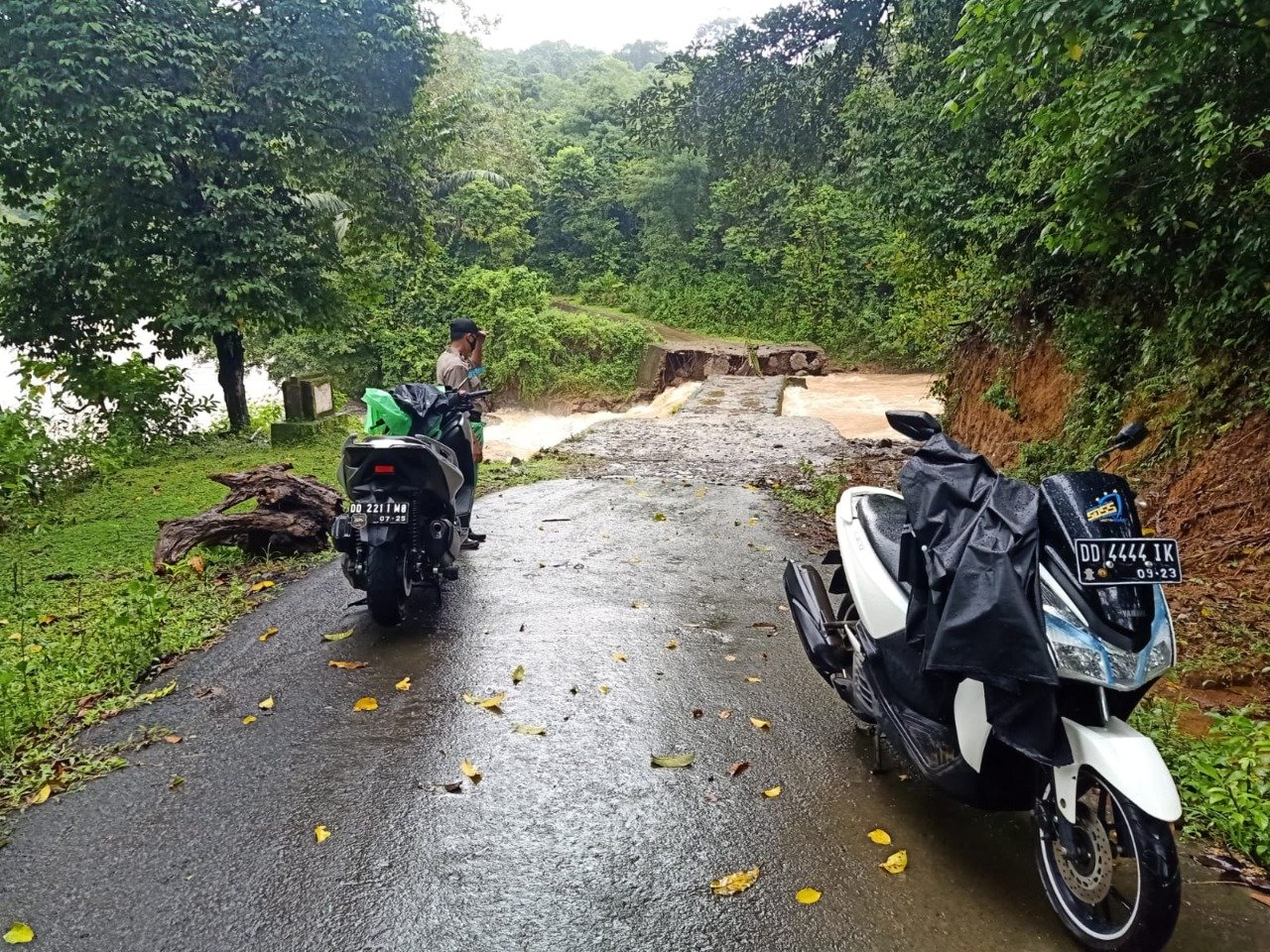"Jembatan Limpas terputus diperkirakan terjadi pada hari senin 21 Februari 2022 dikarenakan pondasi ujung Jembatan yang dihantam air sungai Balang tua sejak hujan dengan curah tinggi yang terjadi sejak hari minggu 20 Februari 2022 kemarin," ungkap Kasi Humas Polres Gowa AKP M Tambunan saat dikonfirmasi.
