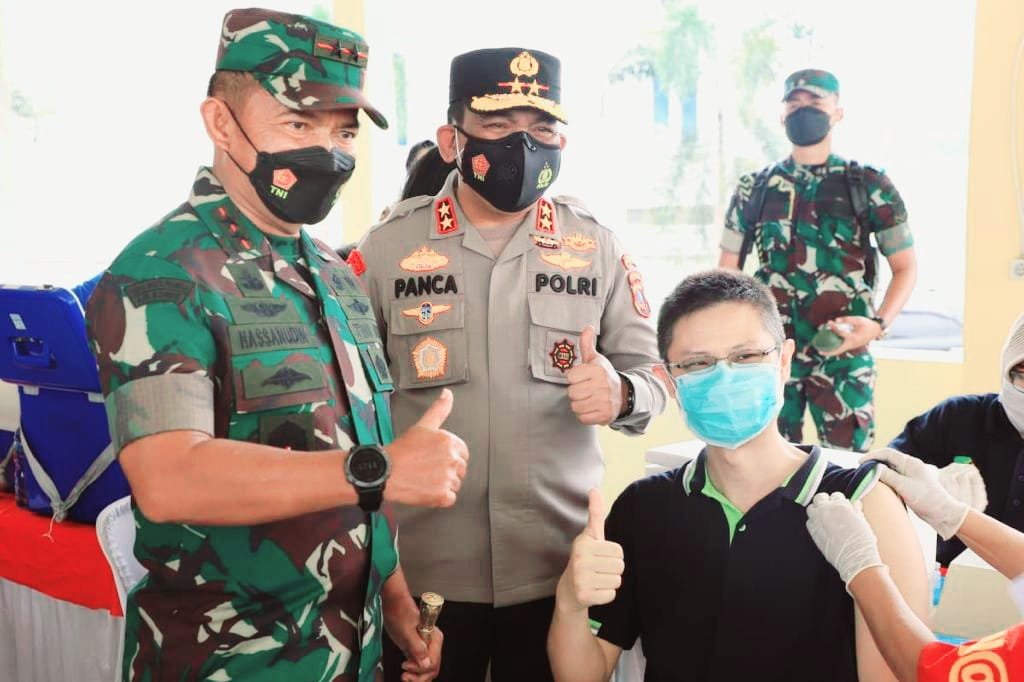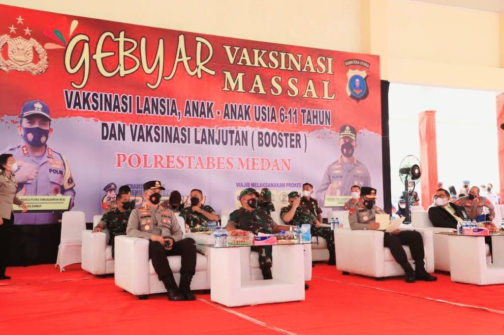 Kebersamaan dan kekompakan Pangdam I/Bukit Barisan (BB), Mayjen TNI Hassanudin, SIP, MM, bersama Kapolda Sumut, Irjen Pol Drs RZ Panca Putra Simanjuntak, MSi, dalam mempercepat program vaksinasi dengan memfokuskan suntikan kedua dan penguat (booster) kepada lansia dan anak usia 6-11 tahun terus bergulir di seluruh wilayah Sumatera Utara.