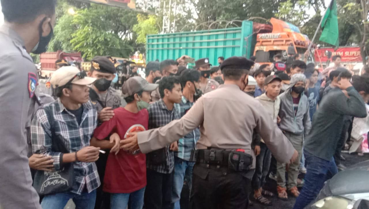 Aksi unjuk rasa yang berakhir kondusif dan mendapat pengawalan ketat aparat kepolisian ini nyaris diwarnai kericuhan akibat terjadi dorong-dorongan ketika sejumlah mahasiswa mencoba bertahan ditengah jalan meski telah dihalau petugas agar arus lalu lintas kendaraan bisa berjalan lancar kembali. (ht)