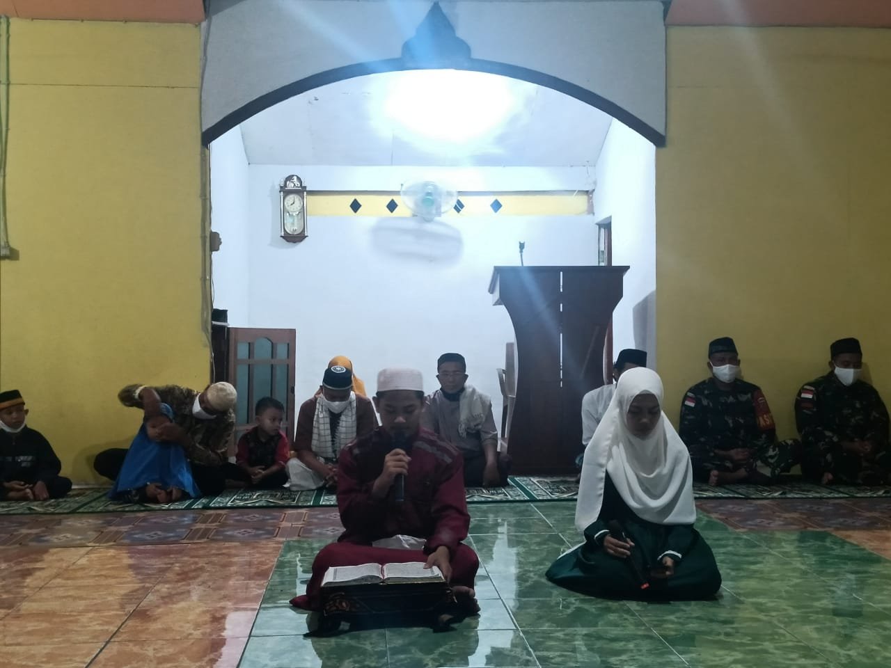 Sebelum kegiatan dimulai, anggota Satgas membagikan masker kepada jemaah Masjid agar selalu mematuhi protokol kesehatan. (*)