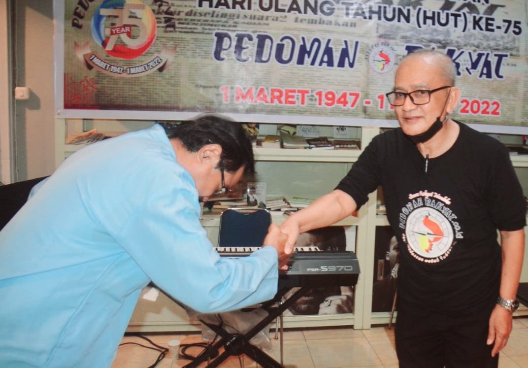 Hadiah buku berisi lebih 300 halaman itu diserahkan langsung oleh penulisnya, H.M. Dahlan Abubakar, mantan Pemimpin Redaksi Harian Pedoman Rakyat, pada acara syukuran peringatan HUT ke-75 Harian Pedoman Rakyat, Selasa 1 Maret 2022 di Kafe Baca Jl Adhyaksa Nomor 2, Makassar.