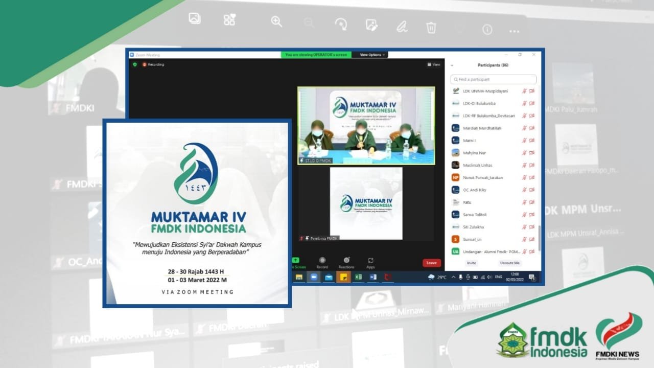 Forum Muslimah Dakwah Kampus Indonesia (FMDKI) menggelar Muktamar IV mulai Selasa hingga Kamis (1-3/3/2022) secara hybrid di Aula Hotel Khadijah Makassar dan Zoom Meeting.