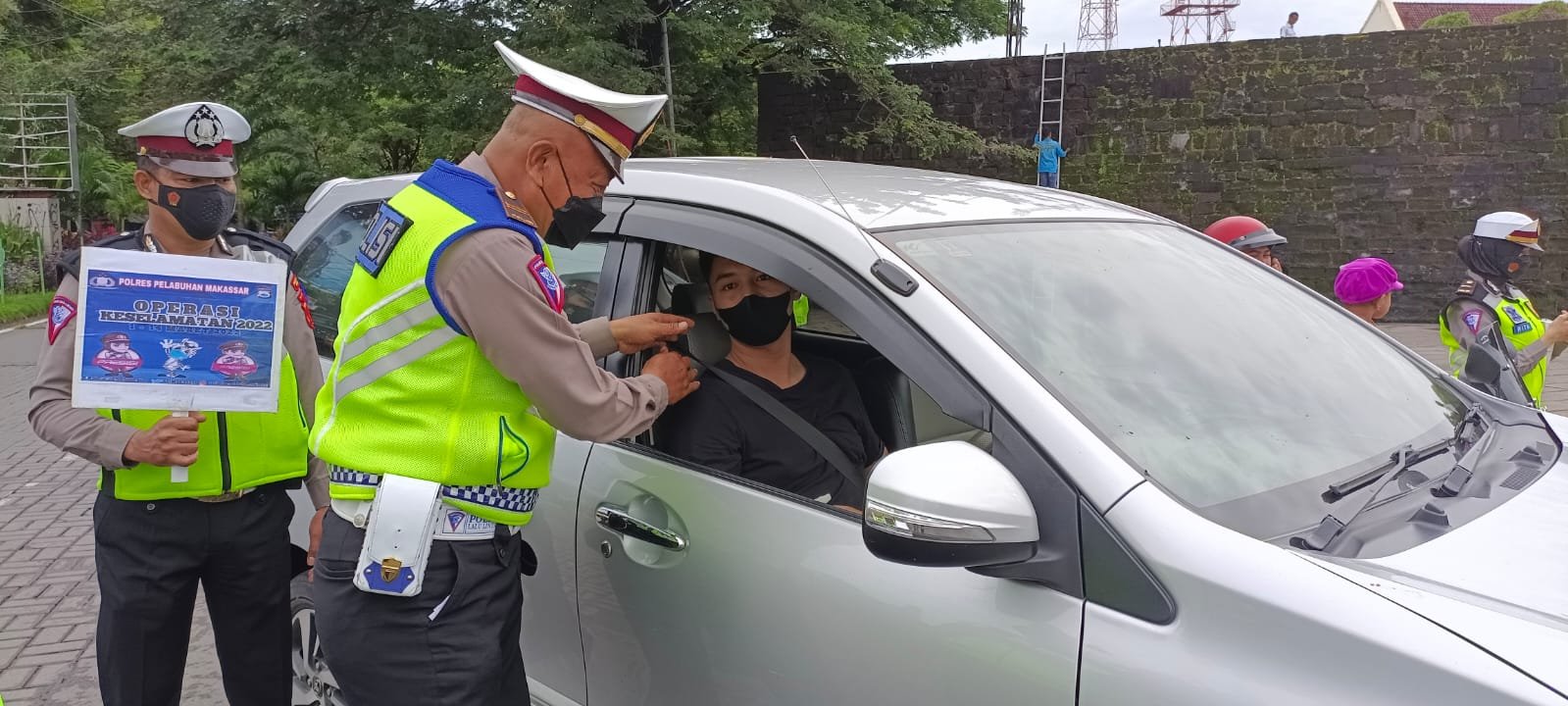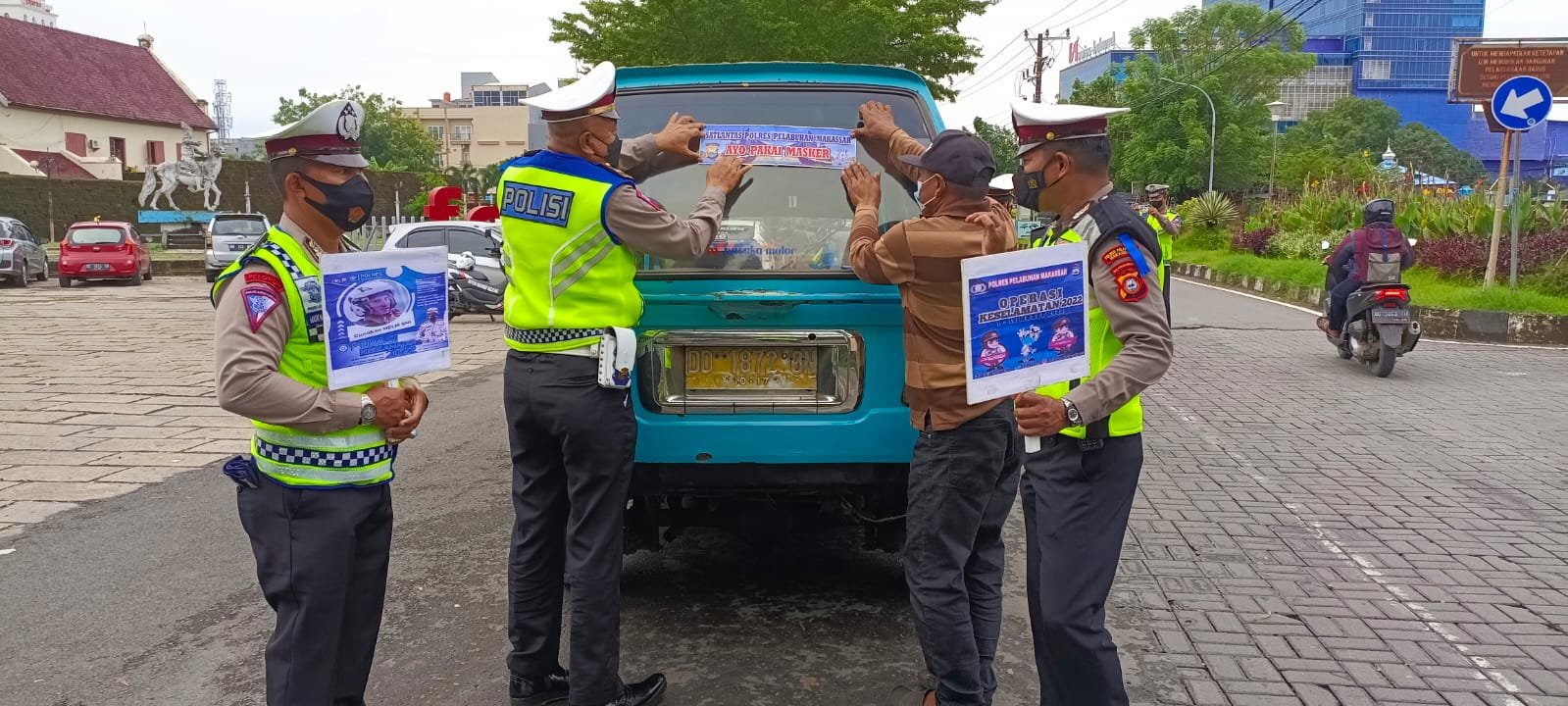 Kasubsipidm Sihumas Iptu Burhanuddin Karim, menerangkan, Satlantas Polres Pelabuhan Makassar kampanyekan memakai masker dan disiplin orokes saat pandemi Covid-19 dengan cara menempelkan stiker di seluruh kendaraan roda empat keatas dan roda dua yang saat itu melintas di jalan Ujung Pandang dalam kegiatan Operasi Keselamatan 2022.