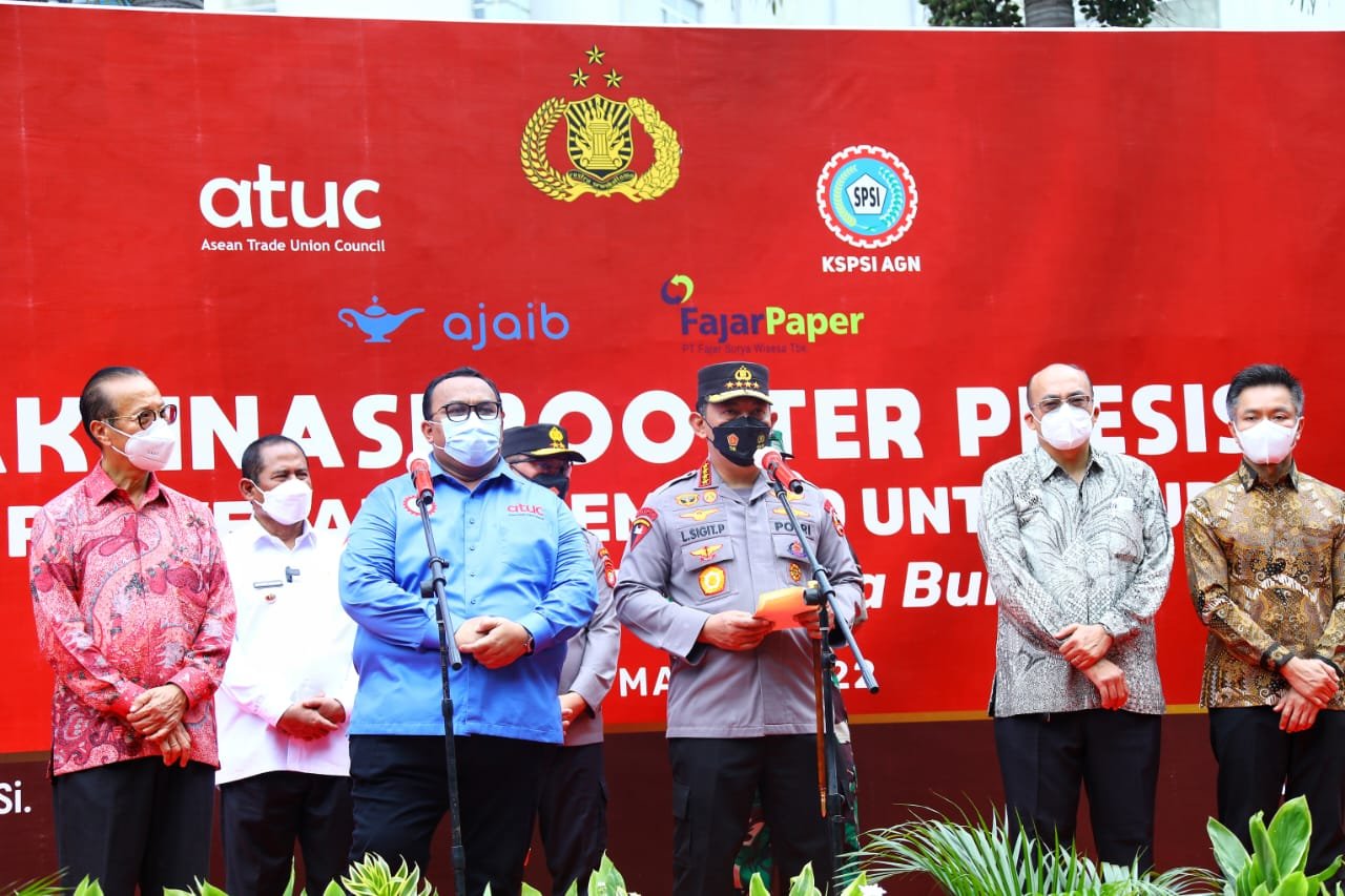 "Oleh karena itu penting sekali memastikan seluruh rekan-rekan buruh dalam kondisi optimal dan sehat, salah satunya karena saat ini kita sedang hadapi varian Omicron," ujar mantan Kabareskrim Polri itu.