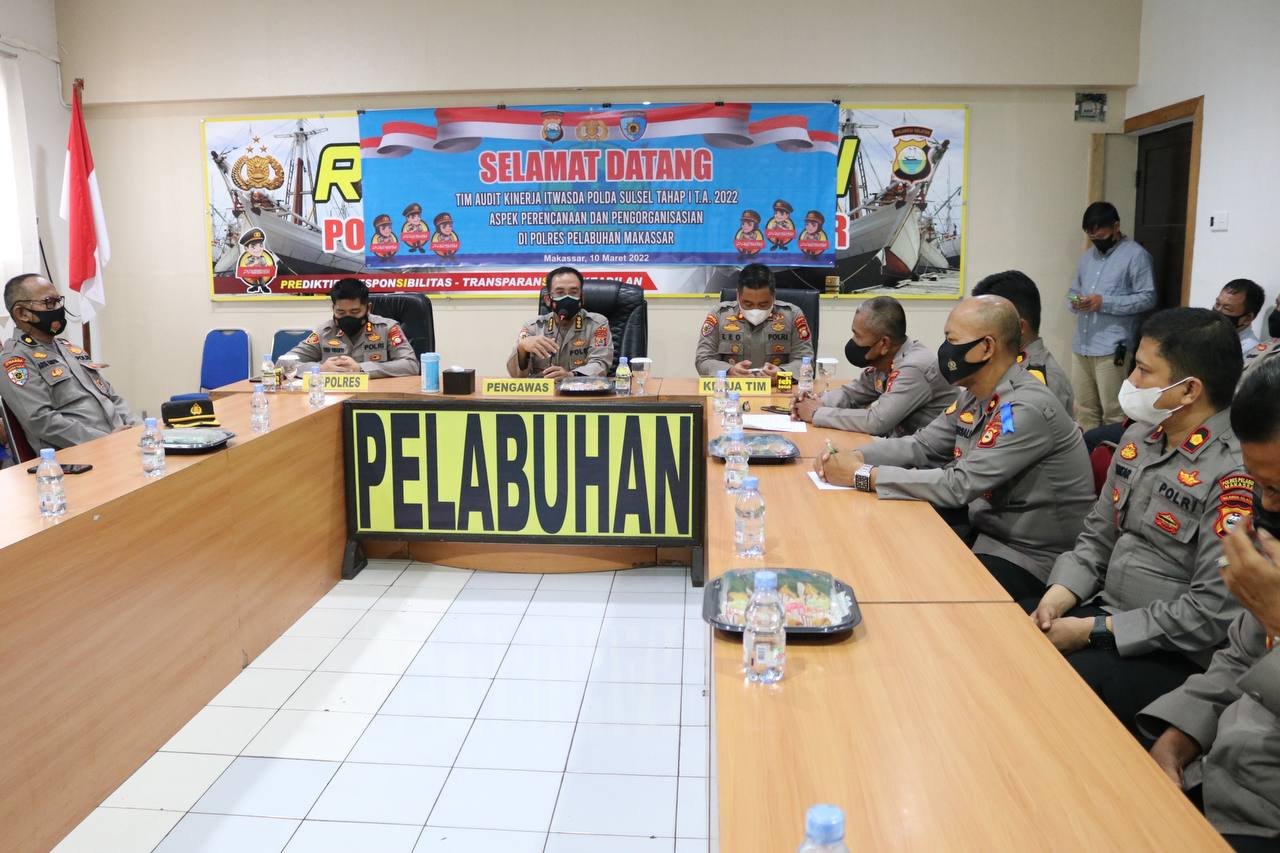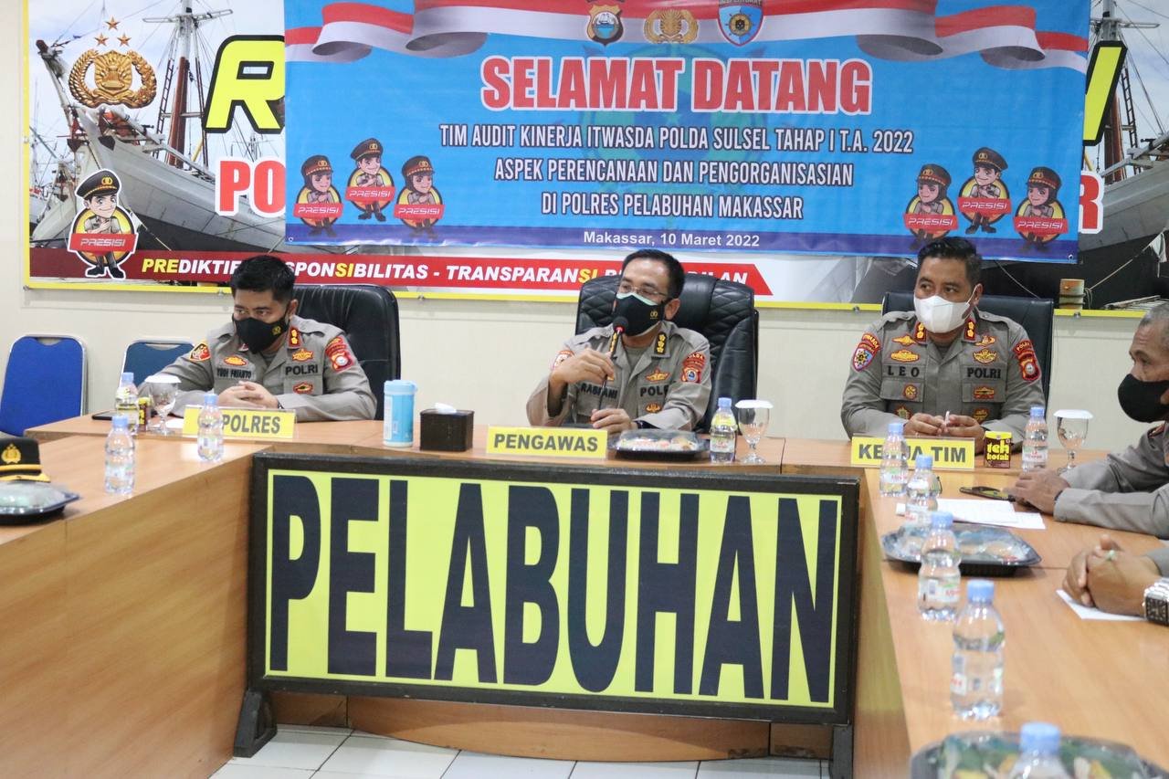 Tim Wasrik (pengawasan dan pemeriksaan) audit kinerja Irwasda Polda Sulsel Tahap I tahun 2022 aspek pelaksanaan dan pengendalian melakukan kunker ke jajaran Polres Pelabuhan Makassar.