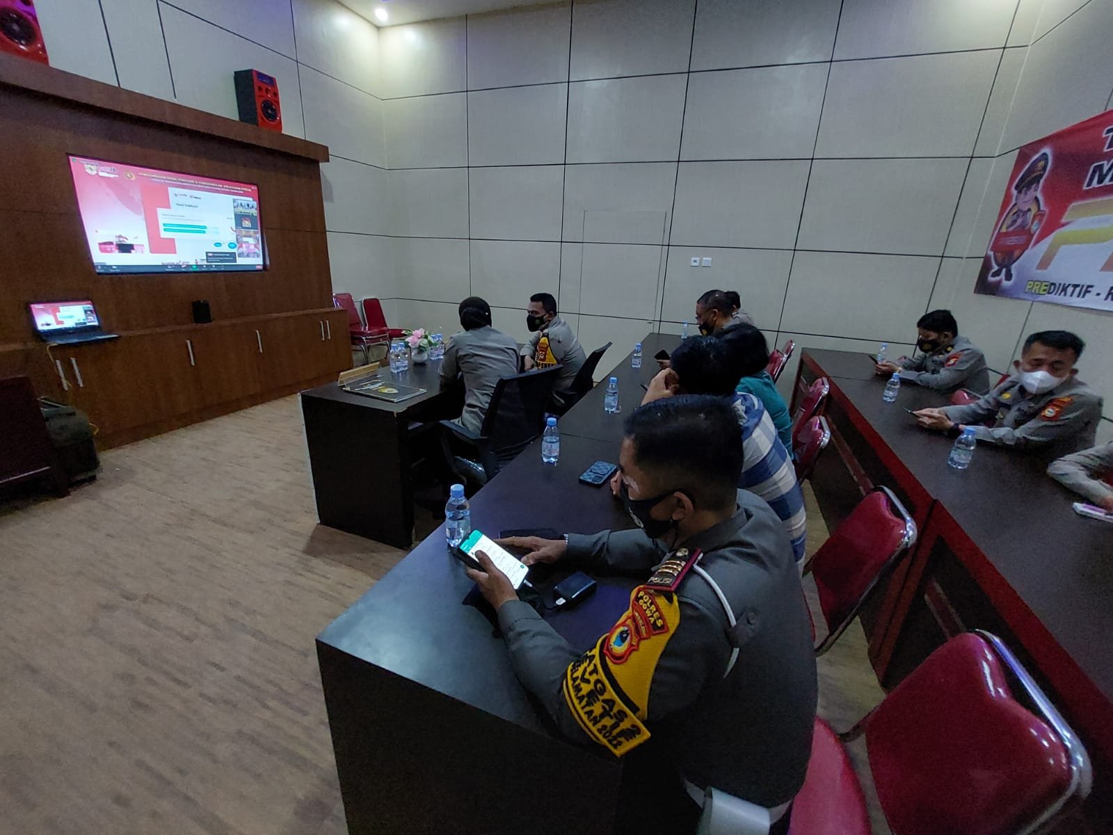 Kapolres Gowa AKBP Tri Goffarudin P, S.I.K., MH didampingi Pejabat Utama (PJU) serta Para Operator Polres mengikuti zoom meeting, bertempat di ruang Vicon Polres Gowa menerima penghargaan predikat layanan publik sangat baik dari Kementerian PAN-RB.