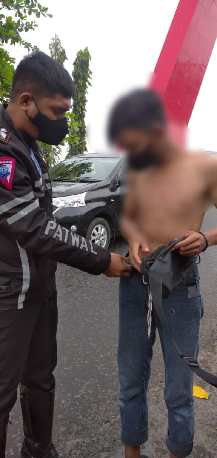 Remaja tersebut awalnya mengendarai sepeda motor roda dua yang saat itu tidak menggunakan helm sehingga Brigpol Muhammad Syaifullah mengehentikannya.
