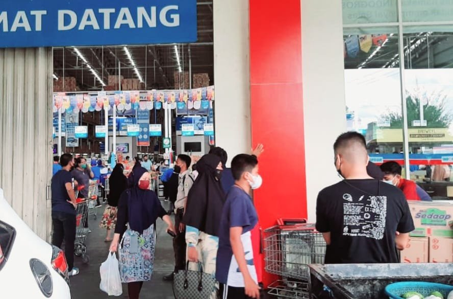 Pengamatan awak media, sesakan pengunjung di depan pintu masuk sampai pelataran sekitar gedung, tampak tidak sebanding dengan pemandangan di dalam gedung Indogrosir yang terlihat lengang. Sesakan di depan pintu masuk dan pelataran sekitar gedung yang terkesan mengabaikan penerapan protokol kesehatan Covid-19 karena tidak lagi menjaga jarak, justru berpotensi menimbulkan klaster baru penularan Covid-19.