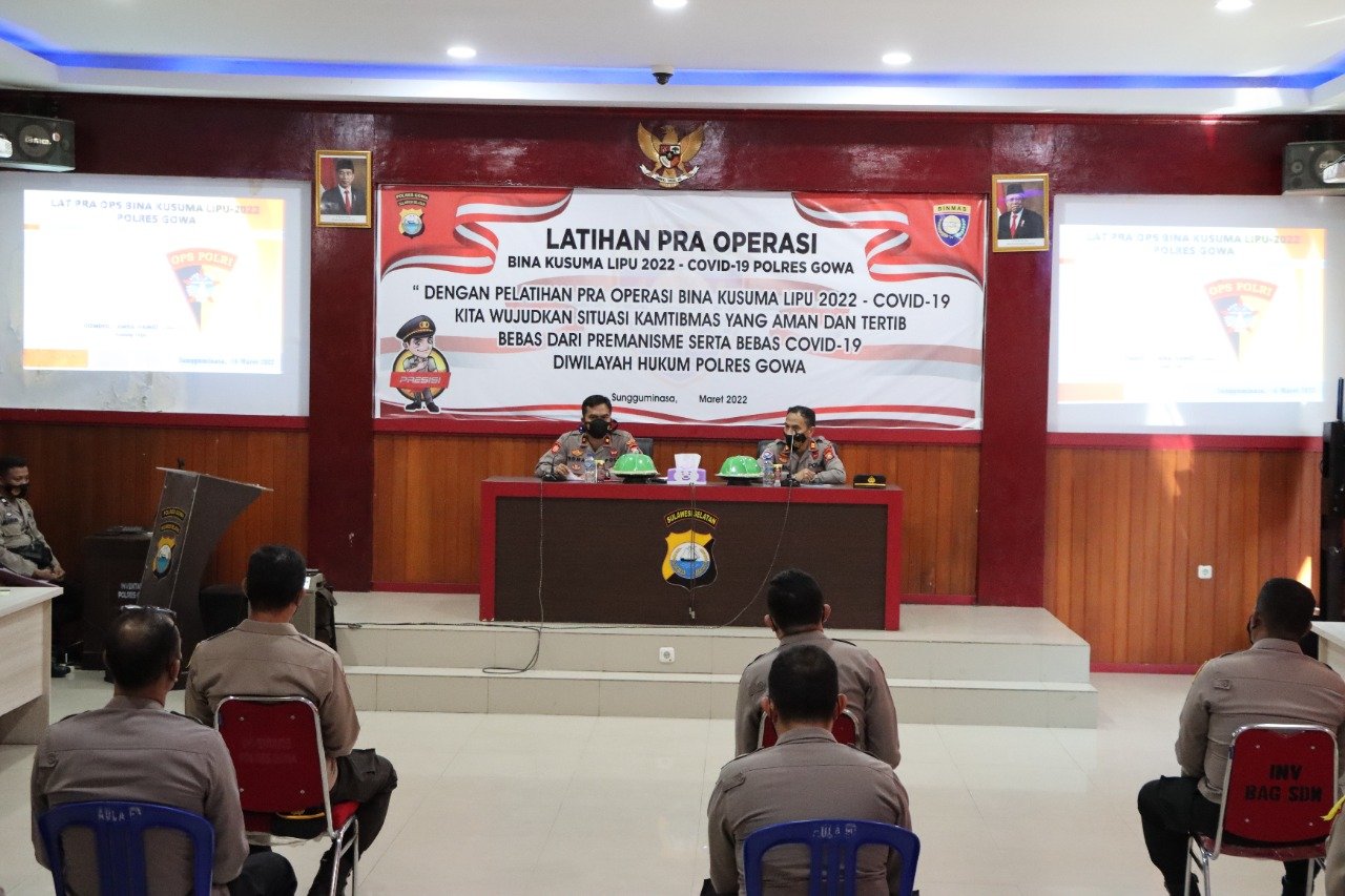 Kegiatan Latpraops Bina Kusuma Lipu Tahun ini mengusung Tema "Dengan Pelatihan Pra Operasi Bina Kusuma Lipu 2022 - Covid-19, Kita Wujudkan Situasi Kamtibmas Yang Aman Dan Tertib Bebas Dari Premanisme Serta Bebas Covid-19 Di Wilayah Hukum Polres Gowa".