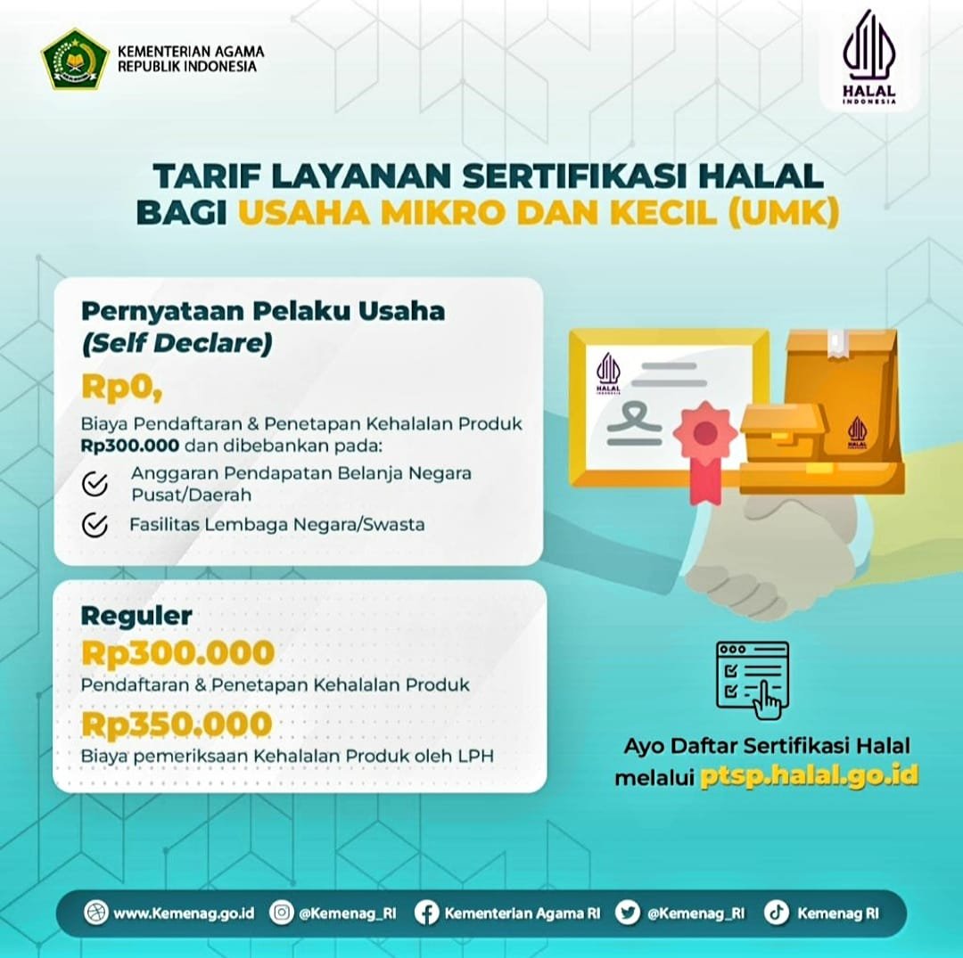 Badan Penyelenggara Jaminan Produk Halal (BPJPH) Kementerian Agama mulai membuka pengajuan sertifikasi halal gratis bagi UMK, melalui Program Sehati.