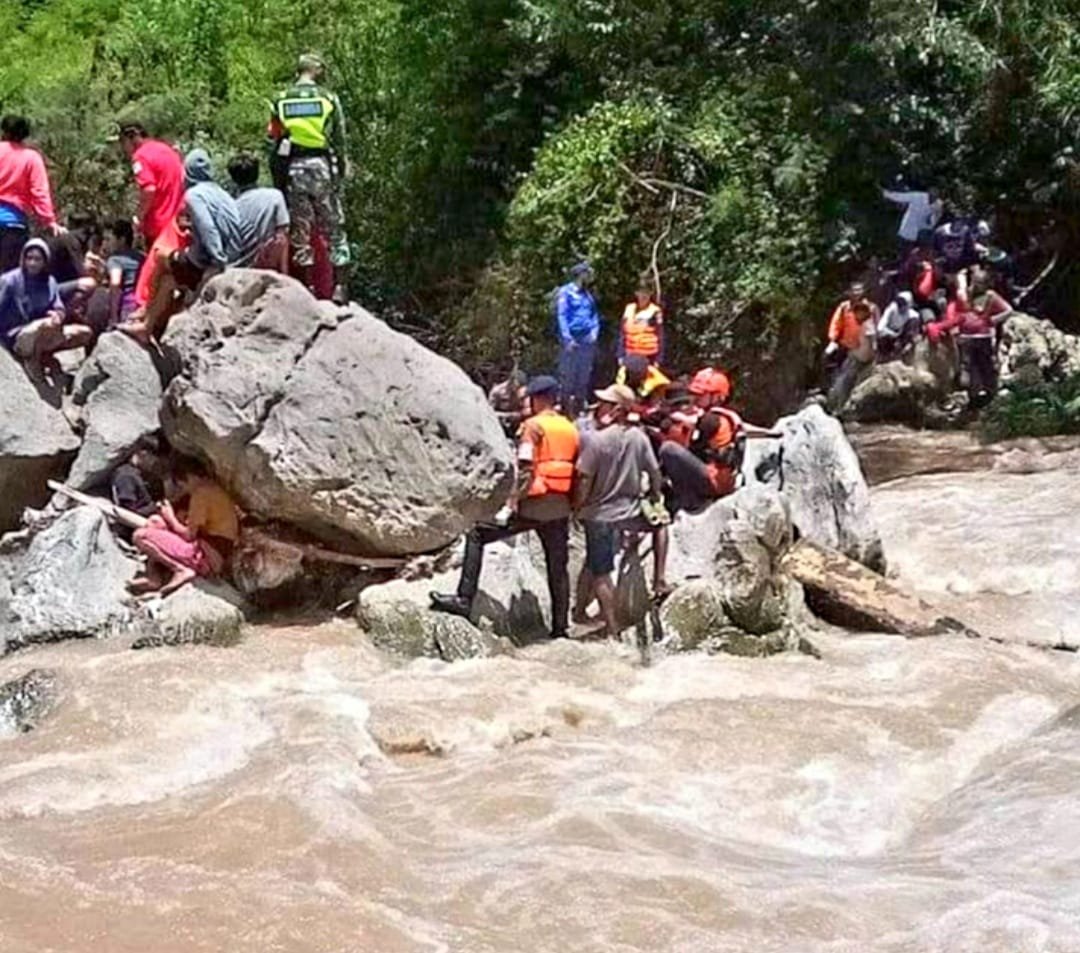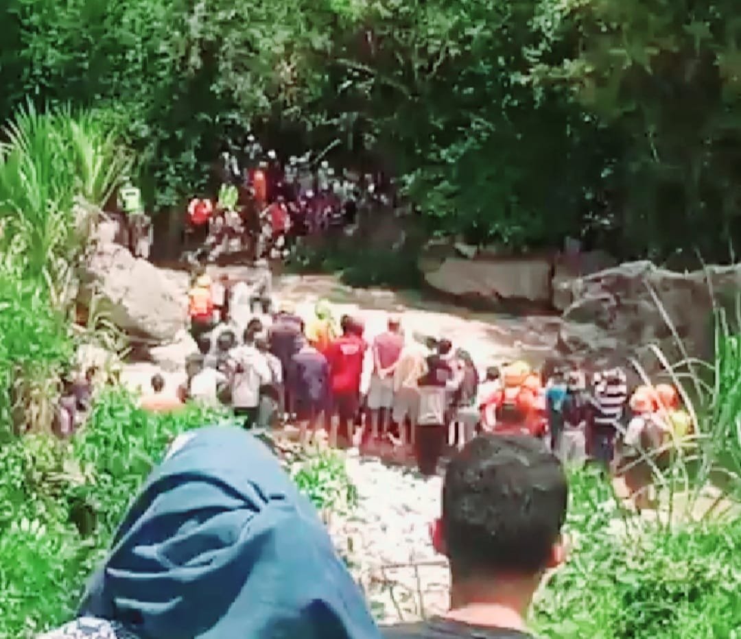 Saat dievakuasi berlangsung dramatis dan memakan waktu cukup lama lantaran air begitu deras dan kondisi sungai terbilang ekstrim, sehingga harus menggunakan tali karmantel milik Tim SAR Gabungan.