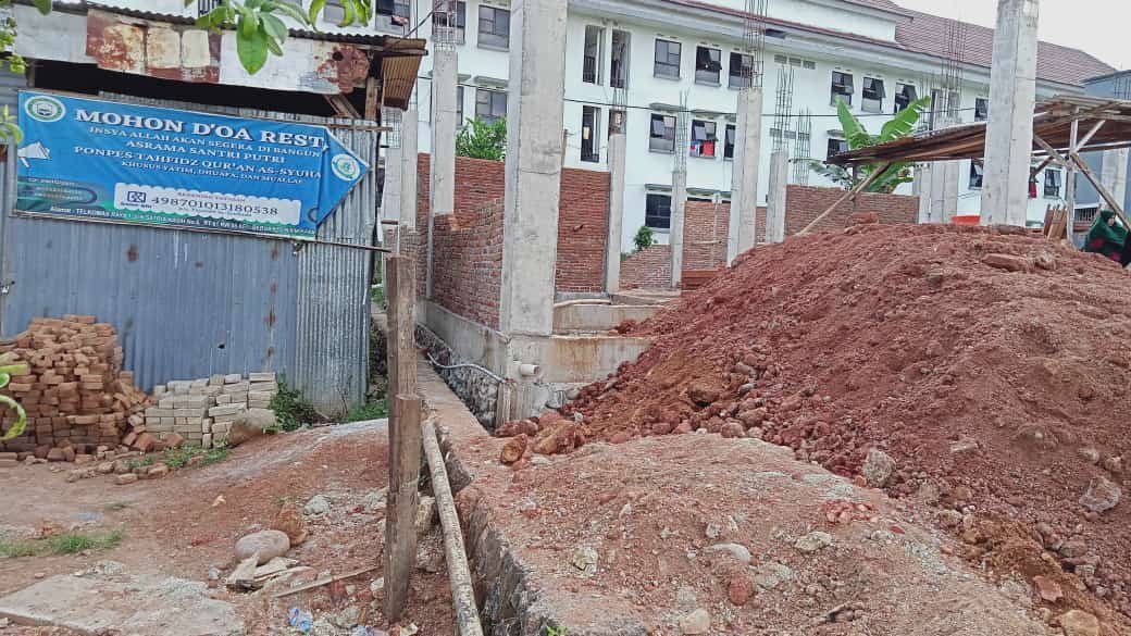 Pembangunan asrama puteri ini dimulai sejak bulan Januari 2022 namun masih jauh dari penyelesaian dikarenakan terkendala biaya baik material maupun upah pekerja.
