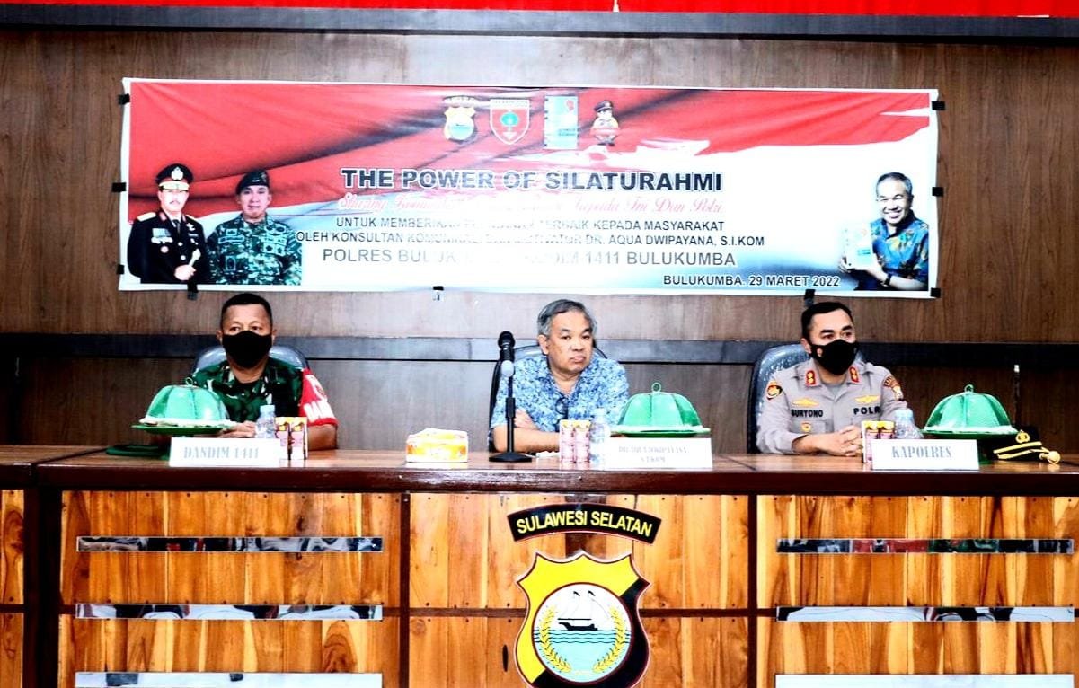 Kegiatan bertajuk The Power Of Silaturahmi, Sharing Komunikasi dan Motivasi kepada TNI dan Polri untuk memberikan pelayanan terbaik kepada masyarakat dihadiri Kapolres Bulukumba AKBP Suryono Ridho Murtedjo, S.IK, M.Si, Wakapolres Kompol Umar, S.Sos, MM, Dandim 1411 Bulukumba diwakili Pasi Pers Kodim Kapt.Arm Irvan Bahtiar, dan para PJU Kodim 1411 - Polres serta personel Kodim 1411 dan Polres Bulukumba.