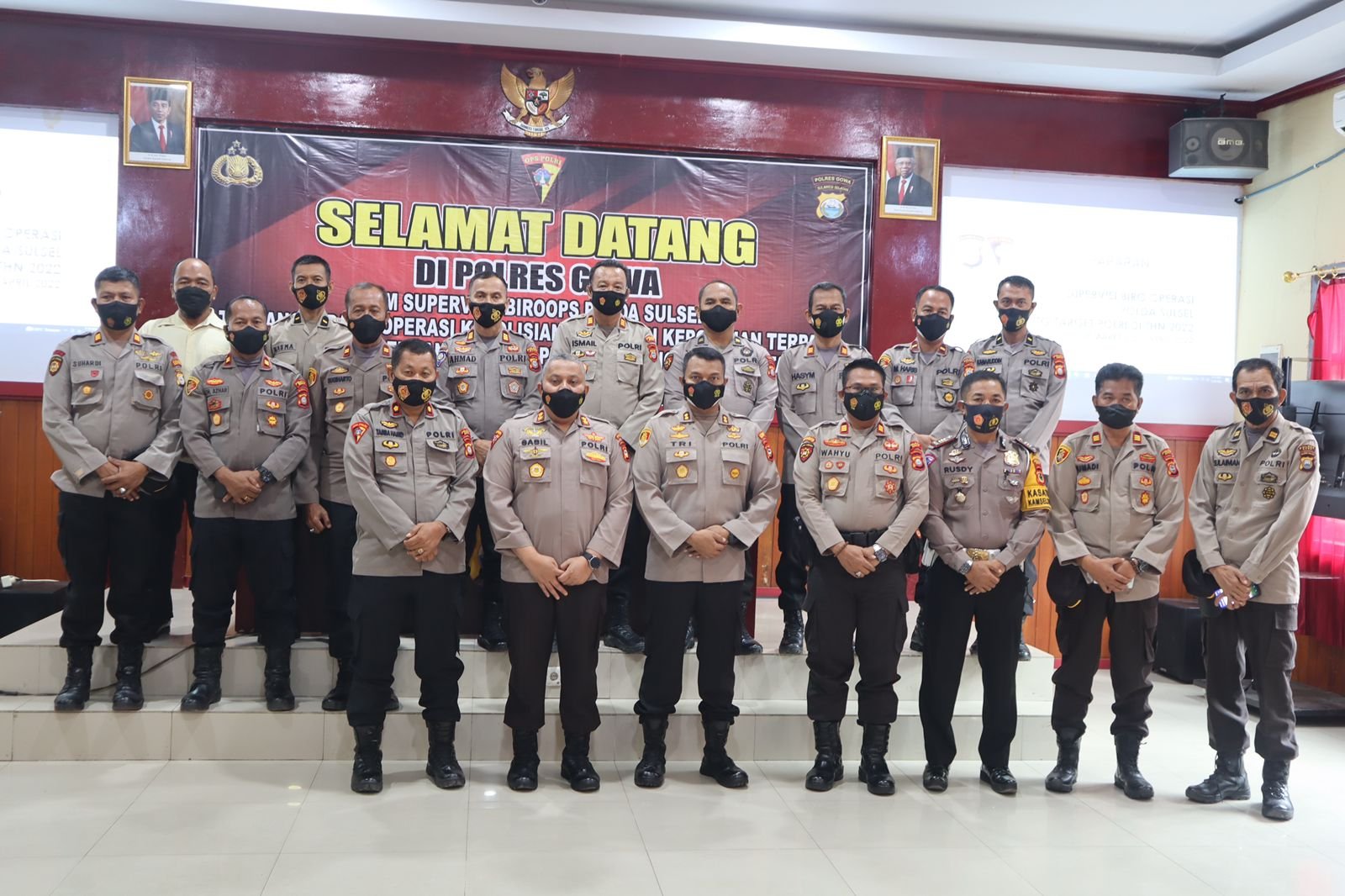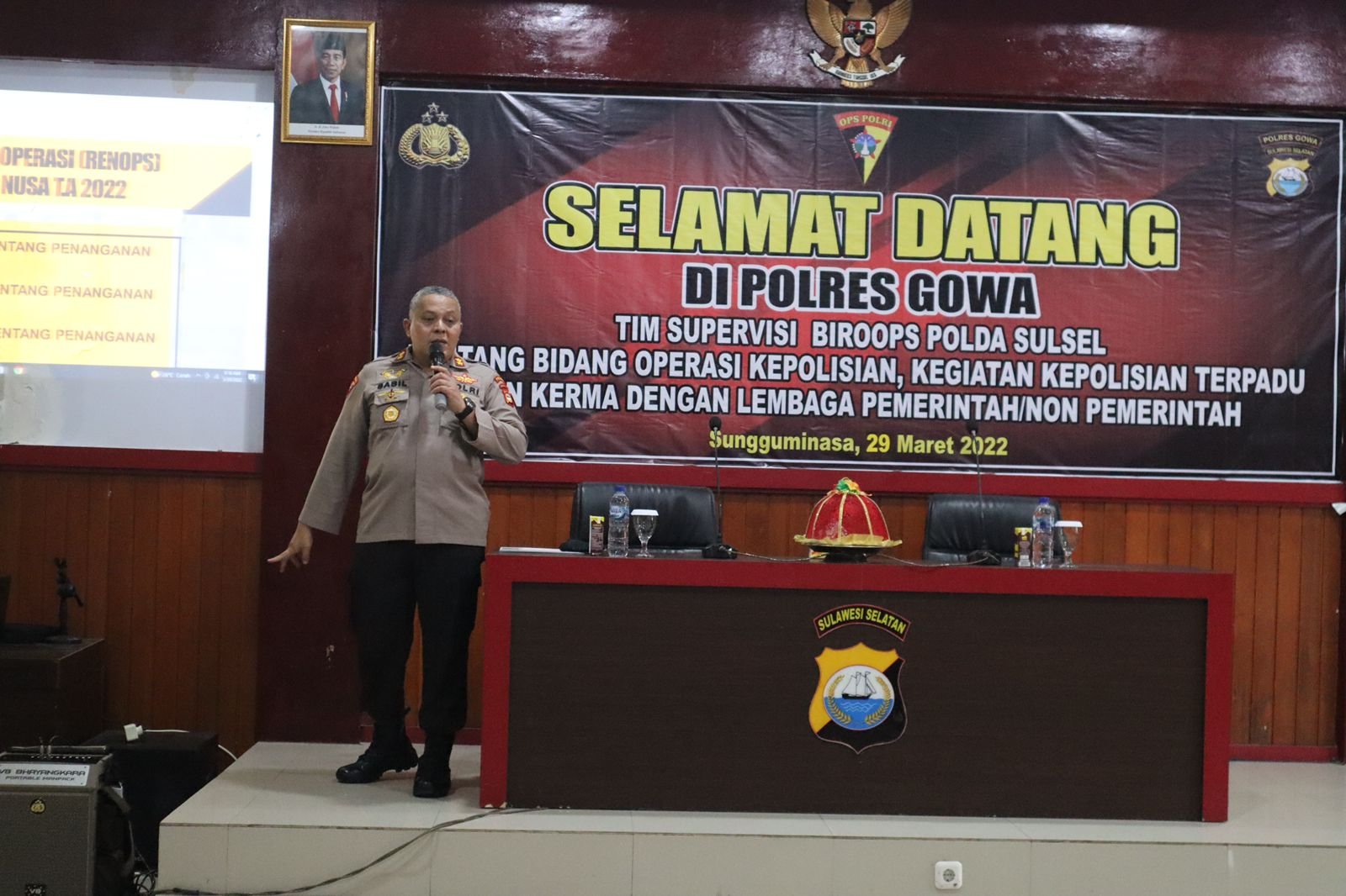 Kapolres Gowa AKBP Tri Goffarudin P, SIK, MH didampingi Kabagops Polres Gowa Kompol Tamba Hamid menerima kunjungan Tim Supervisi Biro Ops Polda Sulsel, Selasa (29/03/2022) di Aula Polres Gowa.