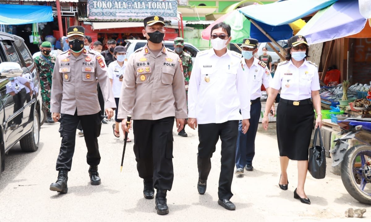 Kapolres Toraja Utara AKBP Eko Suroso bersama Dandim 1414/Tator Letkol Amril Haeruman Tehupelasury dan Wakil Bupati Toraja Utara Frederik Victor Palimbong serta Kepala Dinas Perindustrian dan Perdagangan (Disperindag) Kabupaten Toraja Utara Daniel T Rantetasak melakukan inspeksi mendadak (sidak) terhadap ketersediaan stok bahan pangan menjelang bulan Ramadan di pasar tradisional.