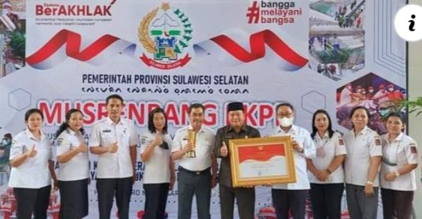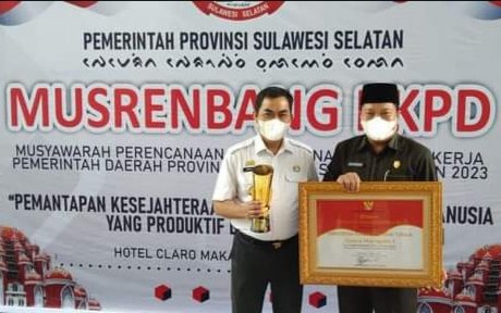 Penghargaan diserahkan Gubernur Sulsel, Andi Sudirman Sulaiman, disaksikan Dirjen Bina Pembangunan Daerah Kemendagri, Teguh Setyabudi, dan Ketua DPRD Sulsel, Andi Ina Kartika Sari.