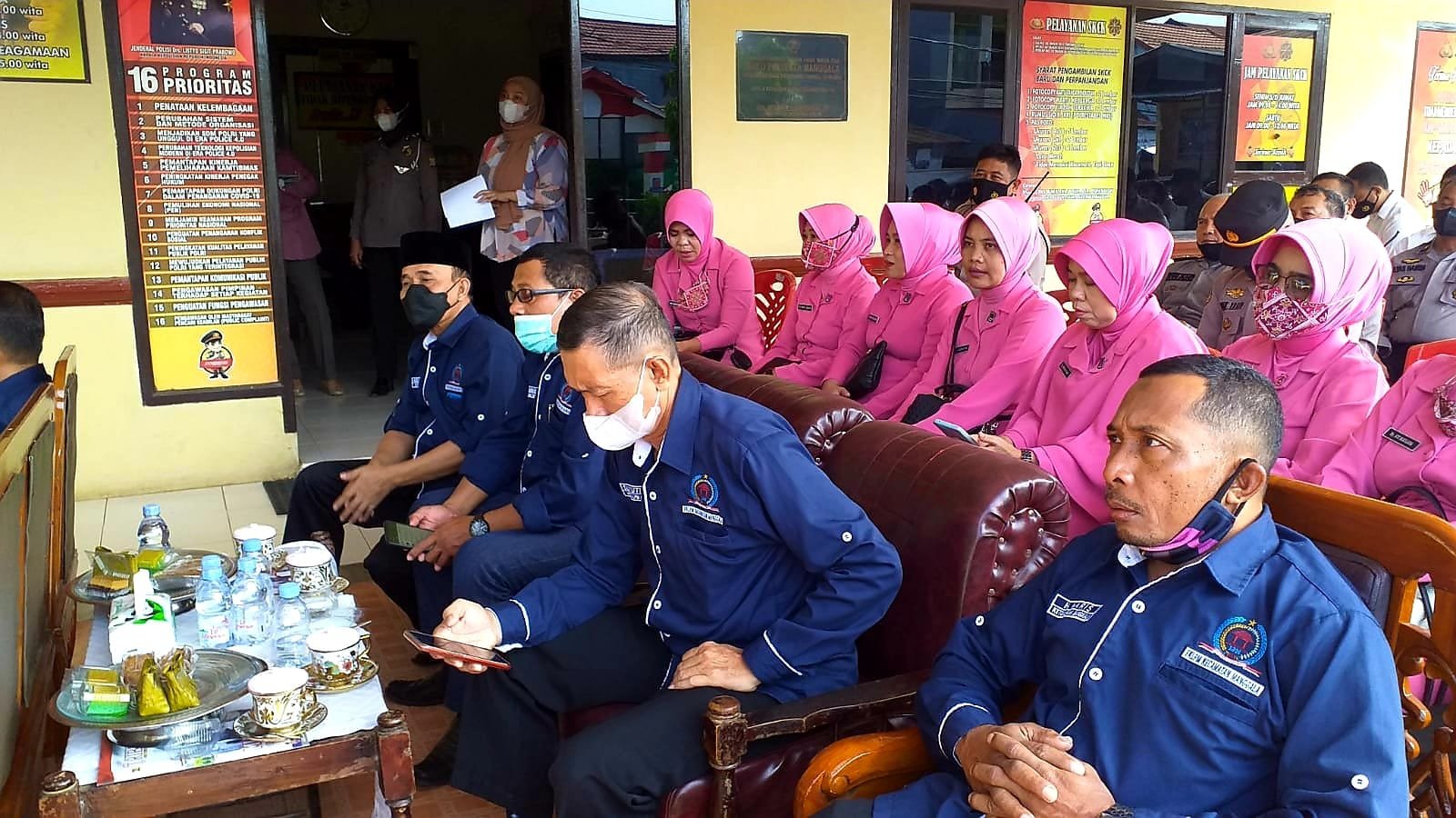 Penyerahan itu ditandai pemberian berkas administrasi, penandatanganan prasasti dan pengguntingan pita, disaksikan Kapolsek, Wakapolsek AKP Wahiduddin, Kanit Reskrim Iptu Syamsuddin dan para Kanit, Panit, Ka SPK, Babinkamtibmas, anggota Polisi serta ibu-ibu Bhayangkari. Dan dihadiri juga para Ketua LPM Kelurahan se-Kecamatan Manggala sebagai tokoh masyarakat.