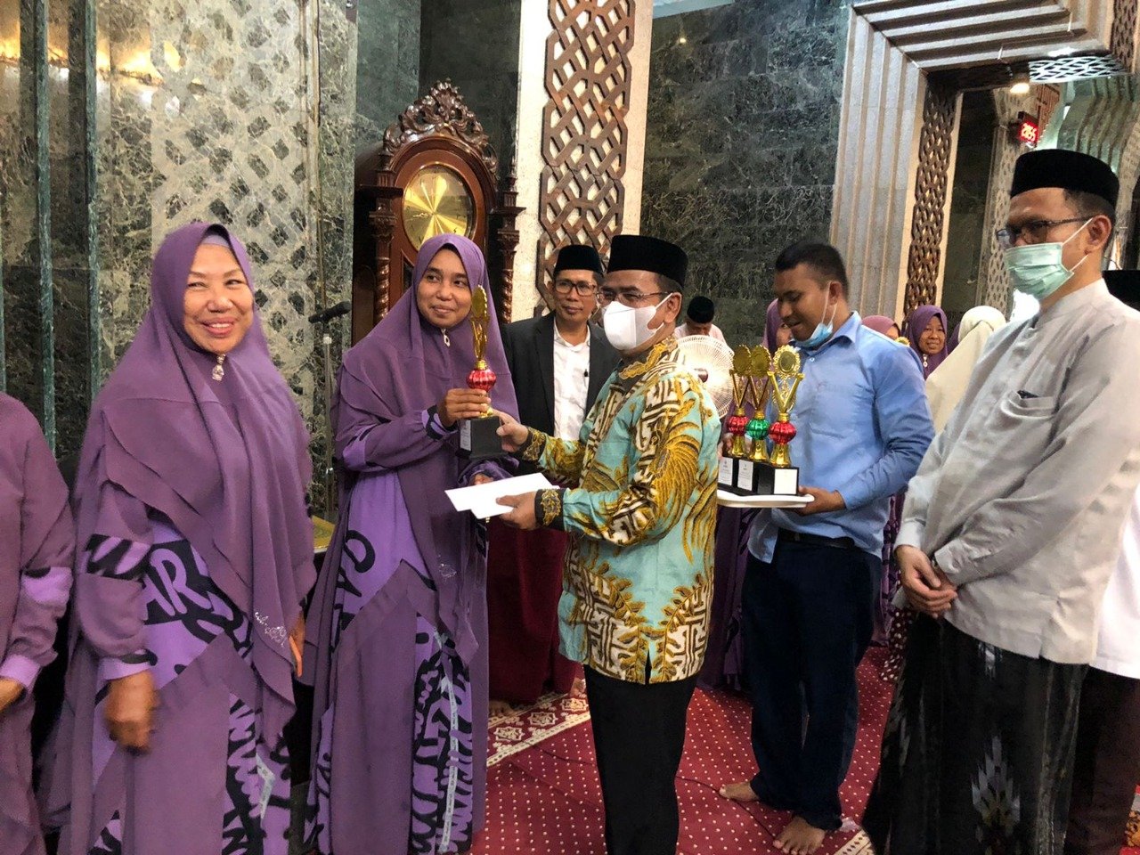Di kesempatan itu juga, Kakanwil Kemenag Provinsi Sulsel dipercayakan menyerahkan piala dan hadiah kepada para pemenang Lomba Sholawat yang digelar oleh Yayasan Al-Markaz Al-Islami dan diikuti oleh Majelis Taklim Kabupaten/Kota se-Sulawesi Selatan. (*)