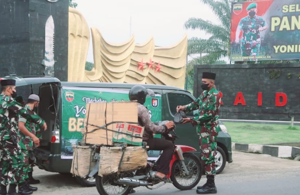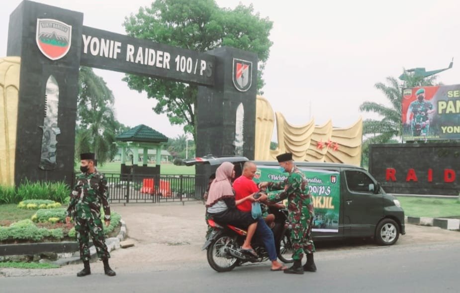Selama Ramadan, Prajurit TNI Yonif Raider 100/PS membagikan takjil secara gratis kepada pengendara yang melintas di depan Mako Yonif Raider 100/PS, mulai selepas Sholat Azhar hingga menjelang waktu berbuka puasa, Sabtu (23/04/2022).