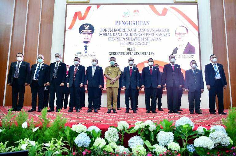 Gubernur Sulawesi Selatan, Andi Sudirman Sulaiman mengukuhkan Pengurus Forum Koordinasi Tanggung Jawab Sosial dan Lingkungan Perusahaan (FK-TSLP) Sulsel Periode 2022-2027 di Baruga Karaeng Pattingalloang, Rumah Jabatan Gubernur, Senin, 23 Mei 2022.