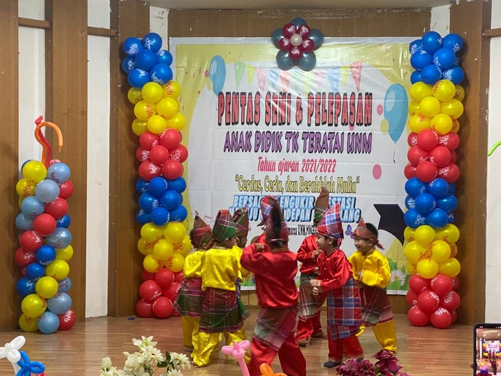 Taman Kanak-Kanak (TK) Teratai Universitas Negeri Makassar (UNM) menggelar pelepasan siswa dan siswi Tahun Ajaran 2021-2022 yang dilaksanakan di Hotel La Macca UNM, Jl. A.P. Pettarani, Banta-Bantaeng, Kecamatan Rappocini, Kota Makassar, Sulawesi Selatan, Minggu (12/06/2022).