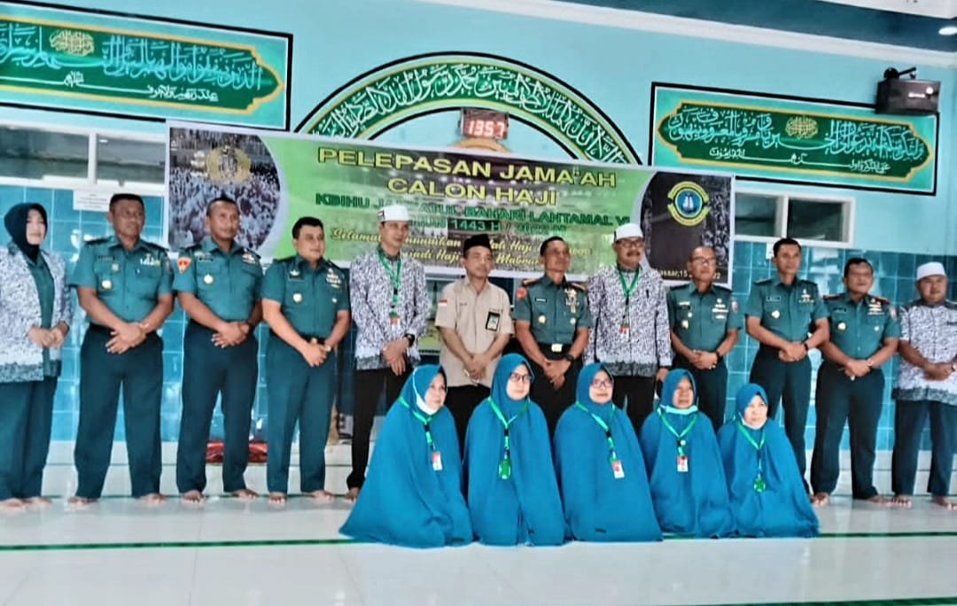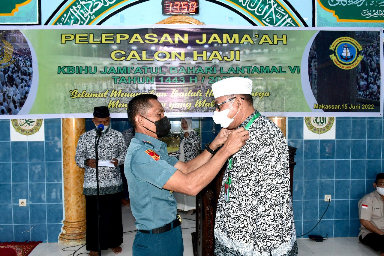 Wakil Komandan (Wadan) Pangkalan Utama TNI Angkatan Laut (Lantamal) VI Makassar, Kolonel (Mar) Marsono, SAP pada Rabu (15/06/2022) siang melepas rombongan jamaah calon haji Kelompok Bimbingan Ibadah Haji dan Umroh (KBIHU) Jamiatul Bahari Lantamal VI Makassar.