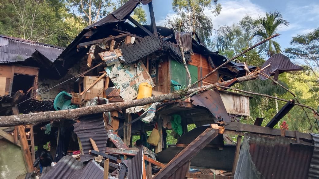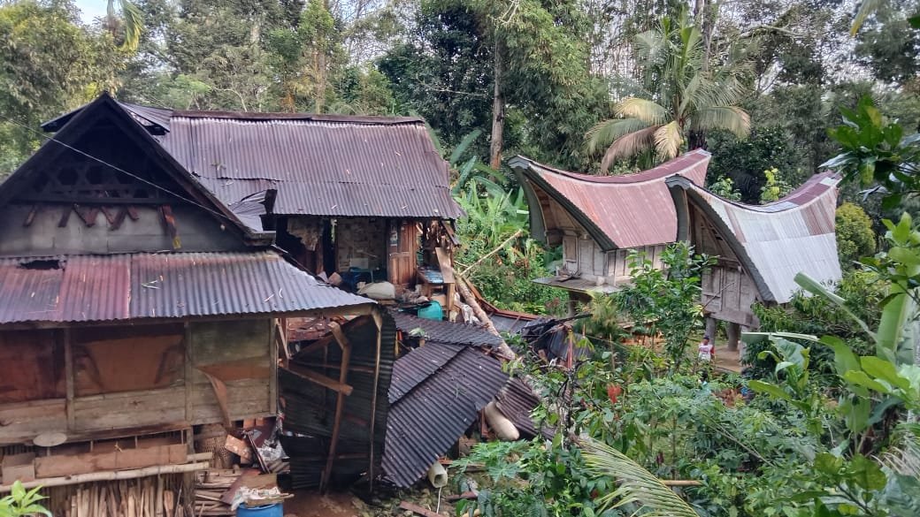 Satu unit rumah panggung milik Ludia Minna, di Dusun Buntu, Lembang Simbuang, Mengkendek, Rabu (15/06/2022) kemarin rusak parah lantaran tertimpa pohon tumbang. Tidak ada korban jiwa insiden tersebut, namun pemilik rumah ditengarai menderita kerugian materil kurang lebih Rp 80 juta rupiah.