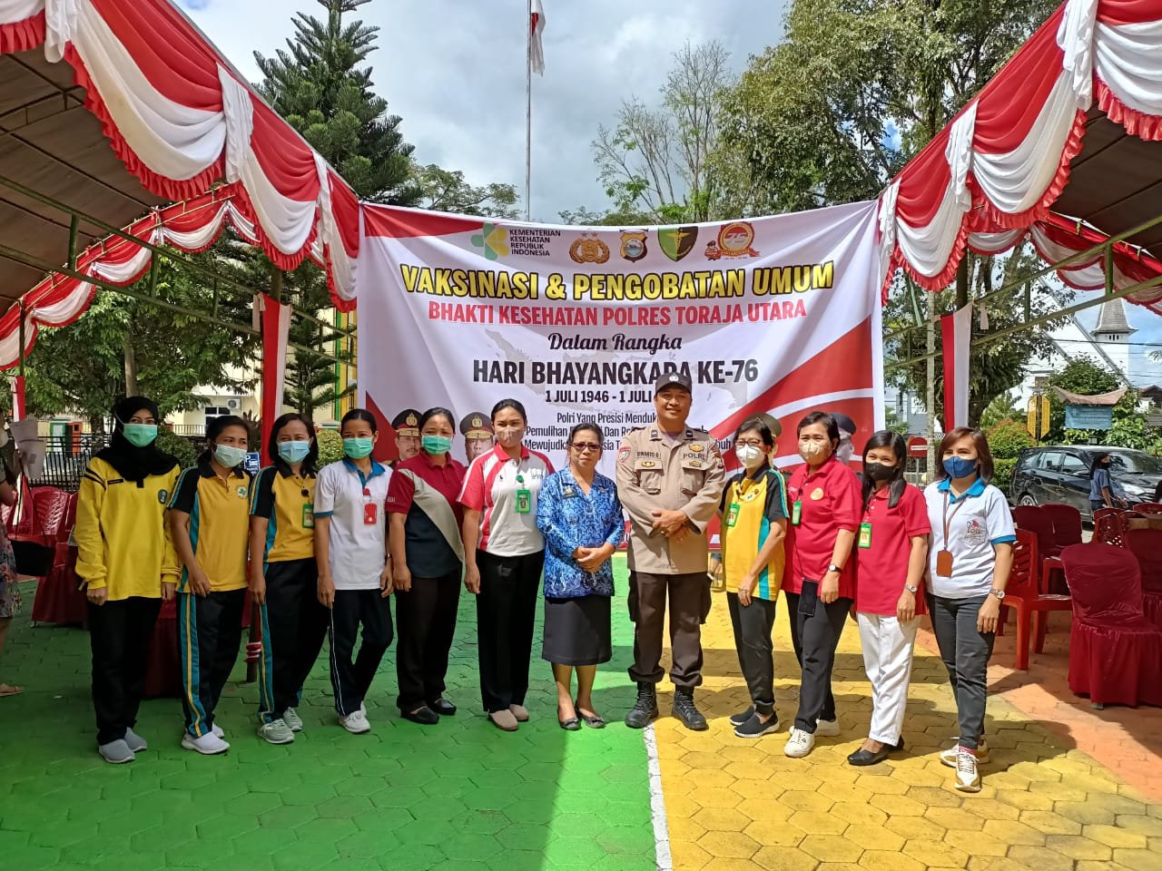 Dalam rangka Hari Bhayangkara ke-76 Tahun 2022, Kepolisian Resor Toraja Utara (Torut) menggelar kegiatan Bakti Kesehatan secara serentak dalam bentuk Pengobatan Umum dan Vaksinasi, bertempat di Halaman Mapolres Toraja Utara Jln. Dr. Sam Ratulangi No. 72 Kecamatan Rantepao, Kabupaten Toraja Utara, Jumat (17/06/2022).