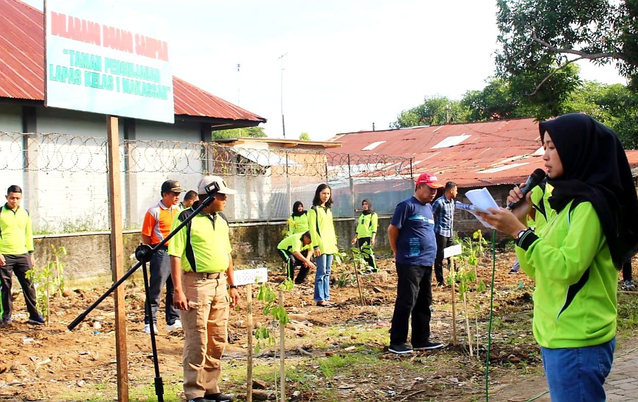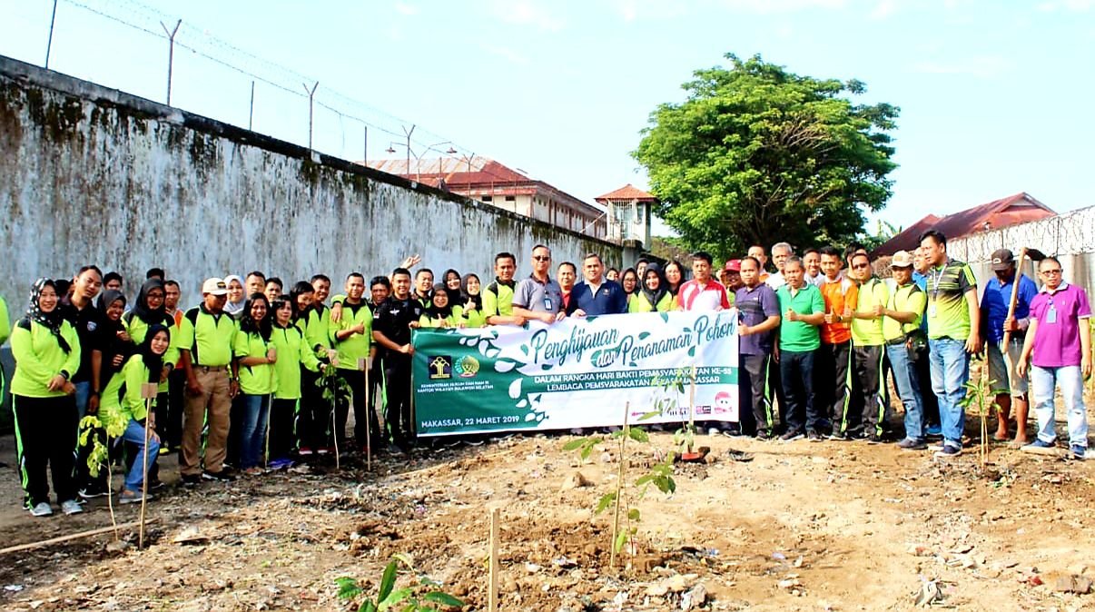 Menjelang Hari Bhakti Pemasyarakatan ke-55, Lembaga Pemasyarakatan (Lapas) Kelas I Makassar menanam 100 tumbuhan hijau disekitar halaman luar tembok Lapas Makassar.
