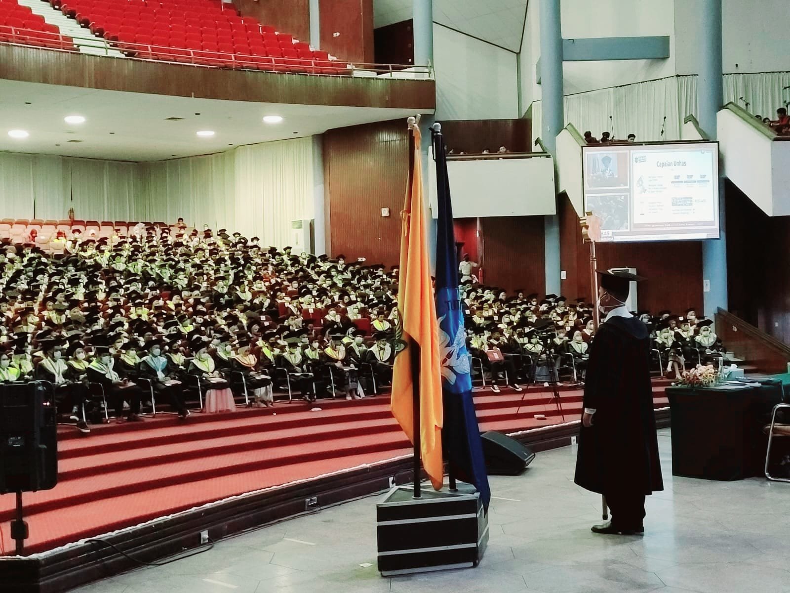 “Dengan mencetak manusia pembelajar, Unhas berkontribusi dalam menghadapi kondisi saat ini, dengan kemajuan teknologi dan digitalisasi. Unhas beradaptasi dengan cepat dan menyesuaikan dengan peradaban baru teknologi yang tidak dapat dihindari,” ujar Rektor Unhas dalam acara yang turut dihadiri para Wakil Rektor, dekan di lingkup Unhas, Ketua Majelis Wali Amanat, dan Ketua Senat Akademik Unhas.