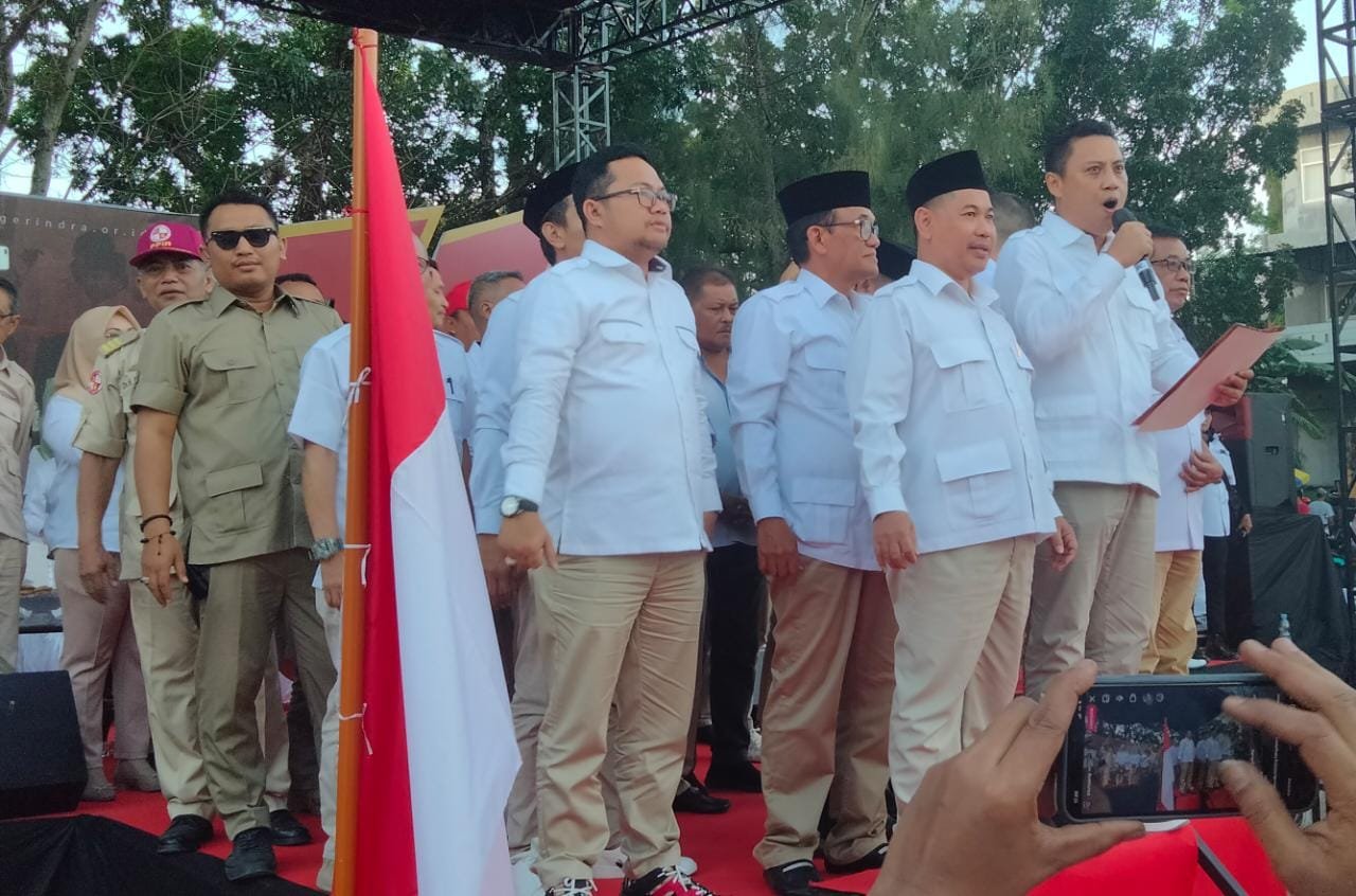Pada kesempatan itu, Ketua DPD Partai Gerindra Sulsel Andi Iwan Aras bersama kadernya membacakan deklarasi Prabowo Subianto. Deklarasi ini merupakan deklarasi perdana di Indonesia untuk membulatkan tekad supaya Prabowo menjadi presiden. (Takdir Abduh)