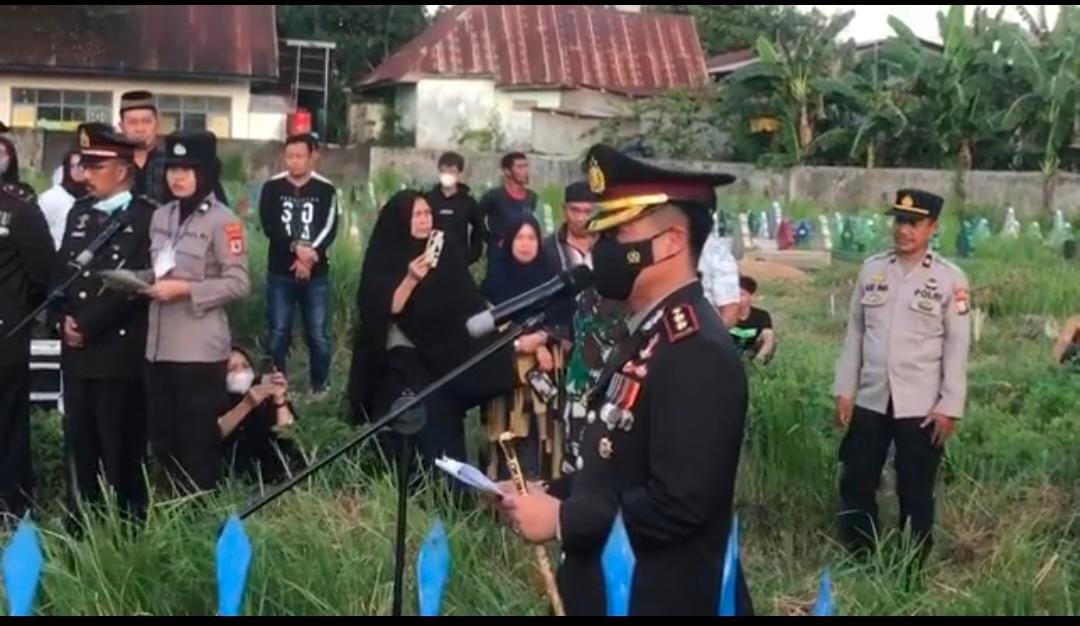 Kepala Kepolisian Resor (Kapolres) Maros AKBP Awaludin Amin, SIK memimpin upacara pemakaman Mayor (Purn) H. Usman Baso Tarang yang meninggal dunia karena sakit, Rabu (27/07/2022) sore.