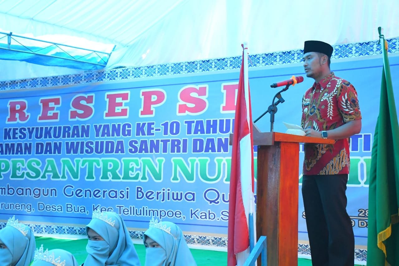 "Mengurus ratusan santri itu bukan pekerjaan yang mudah. Ini membutuhkan ketulusan dan keikhlasan dalam melakukannya, dan ini yang dimiliki oleh almarhum," ujarnya saat menghadiri Wisuda Santri dan Tasyakuran Ponpes Nurul Jibal di Desa Bua, Kecamatan Tellulimpoe, Kamis (28/07/2022).