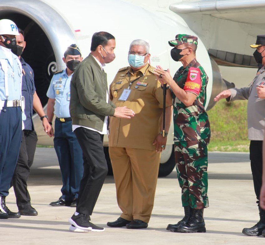 Pangdam XIV/Hasanuddin Mayjen TNI Dr. Totok Imam Santoso, SIP, S.Sos, M.Tr(Han) menyambut sekaligus memberikan pengamanan dalam rangka Kunjungan Kerja (Kunker) Presiden RI Ir. H. Joko Widodo beserta rombongan, bertempat di Lanud Haluoleo, Kabupaten Konawe Selatan, Sulawesi Tenggara, Senin (26/09/2022).