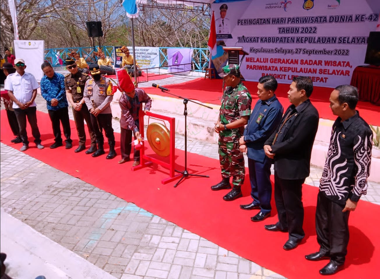 Hadir dalam acara ini adalah Forum Komunikasi Pimpinan Daerah (Forkopimda), Sekretaris Daerah (Sekda) Drs Mesdiyono, Ketua Pengadilan Negeri, Ketua Pengadilan Agama, Asisten, Staf Ahli Bupati, Pimpinan OPD, Instansi Vertikal, Camat, Kepala Desa dan Lurah, Ketua Tim Penggerak PKK, Ketua Dharma Wanita Persatuan, Pelaku Usaha Pariwisata dan Kelompok Sadar Wisata serta Saka Pariwisata. (M. Daeng Siudjung Nyulle)