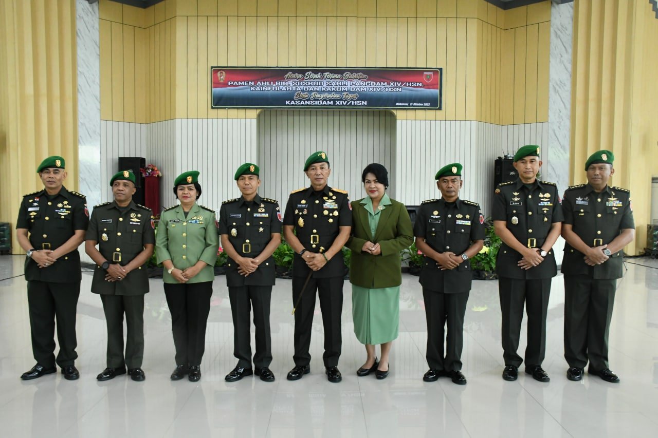 Kainfolahtadam XIV/Hasanuddin Kolonel Arh Rina Kartika, S.Si, M.Tr(Han) sebagai Kasilog Kasrem 031/WB (Pekanbaru) Kodam I/BB, pengganti Letkol Inf Drs. Sahabuddin sebelumnya menjabat Kajarah Akmil. Kolonel Chk (K) Nany Tulak, SH, MH, Kakumdam XIV/Hasanuddin sebagai Pamen Ahli Bid. Hukum Militer dan Humaniter Ditkumad, pengganti Letkol Chk Bahrun Taslim, SH, sebelumnya sebagai Wakakumdam IM.