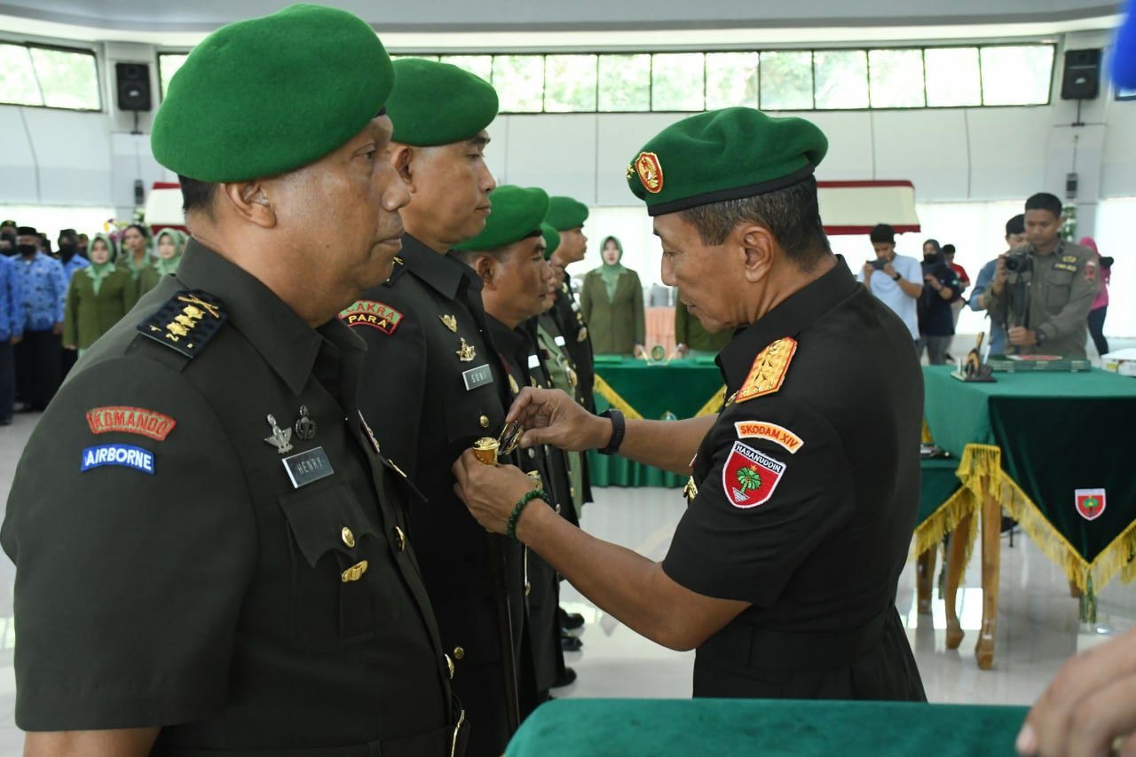 Pangdam XIV/Hasanuddin Mayjen TNI Dr. Totok Imam Santoso, SIP, S.Sos, M.Tr.(Han) mempimpin Serah Terima Jabatan (Sertijab) Pejabat Utama (PJU) Kodam, bertempat di Balai Pertemuan Hasanuddin (BPH) Makodam Jl. Urip Sumoharjo Makassar. Selasa (11/10/2022).