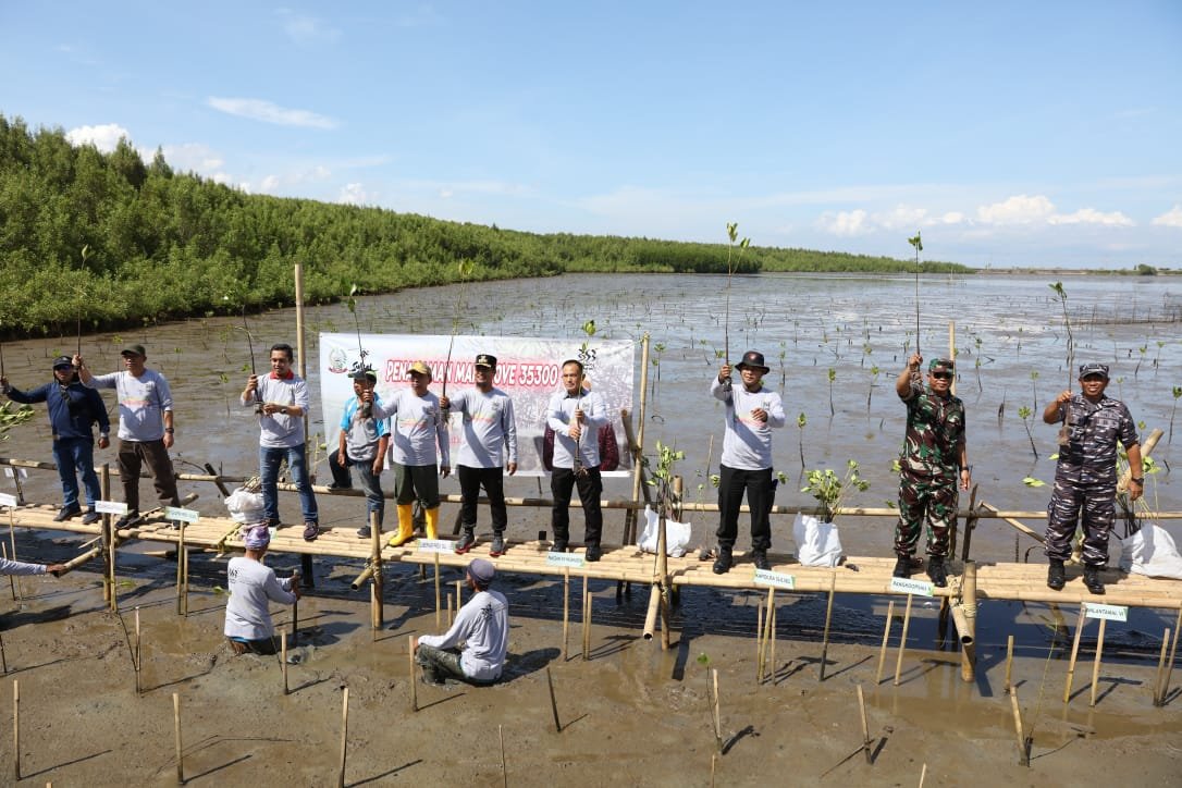 Kegiatan penanaman pohon Mangrove ini melibatkan sekitar 18.000 siswa SMA dan SMK yang dilaksanakan secara serentak di 9 wilayah pesisir Kabupaten/Kota di Sulawesi Selatan.