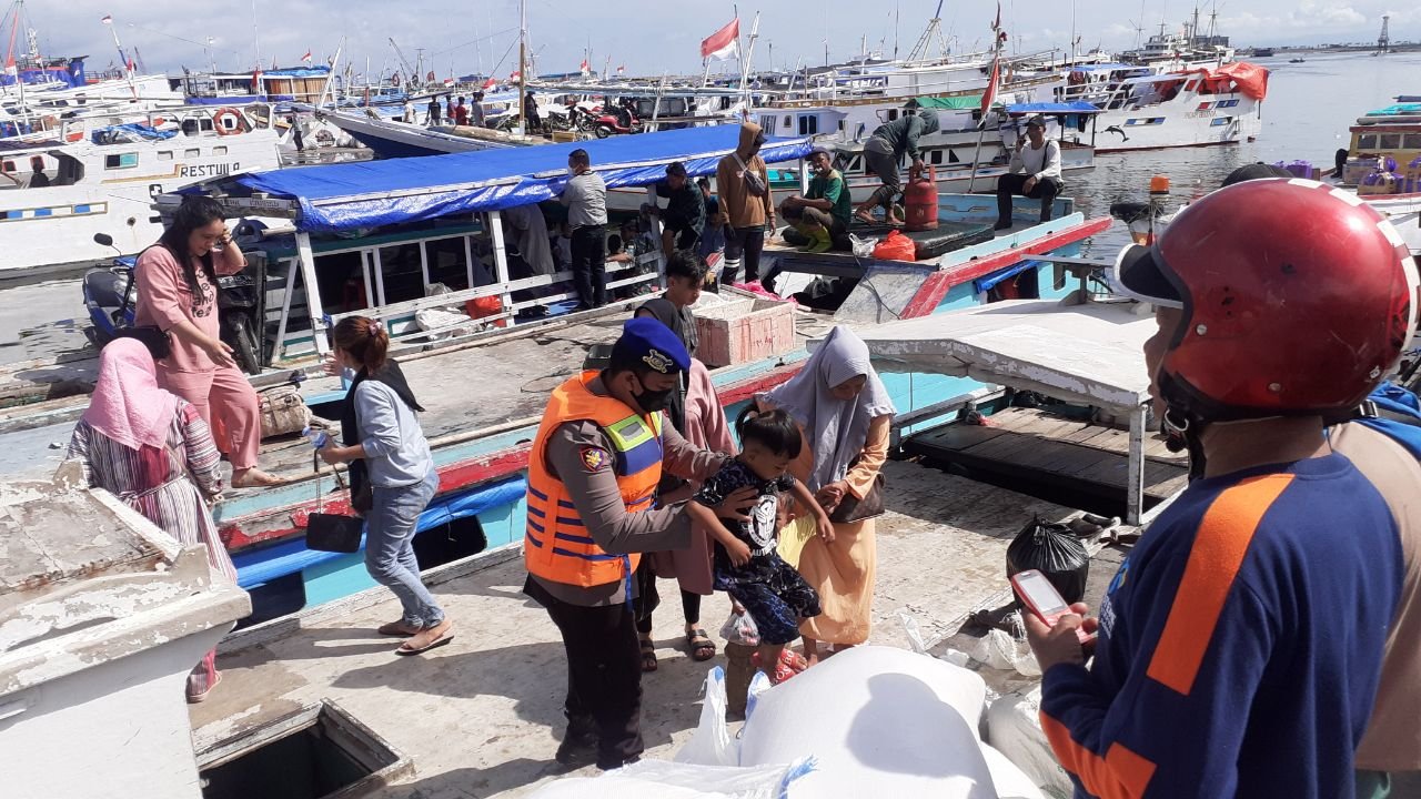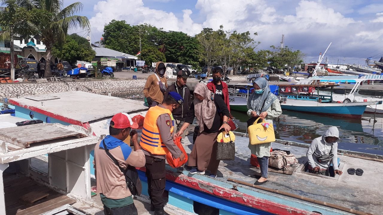 "Pada kesempatan tersebut, personel Satpolair membantu menurunkan para penumpang khususnya penumpang ibu-ibu dan anak-anak yang akan turun dari kapal, guna mengantisipasi terjadinya laka laut di perairan," ucap Kasubsipenmas Sihumas Aipda Adil, Kamis (20/10/2022).