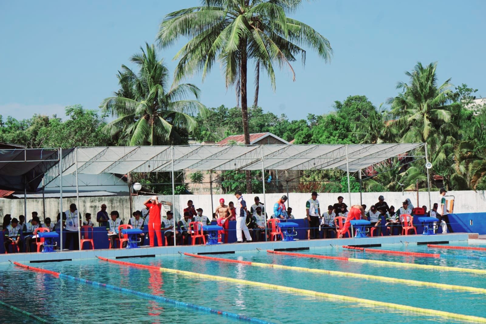 atlet yang sedang berlaga di venue cabang olahraga (Cabor) Renang di Jalan Ahmad Yani, Kecamatan Sinjai Utara, dan panjat tebing di halaman eks Kantor Bupati lama.