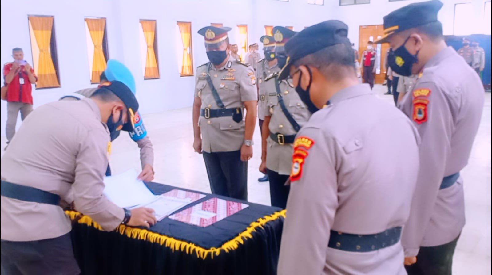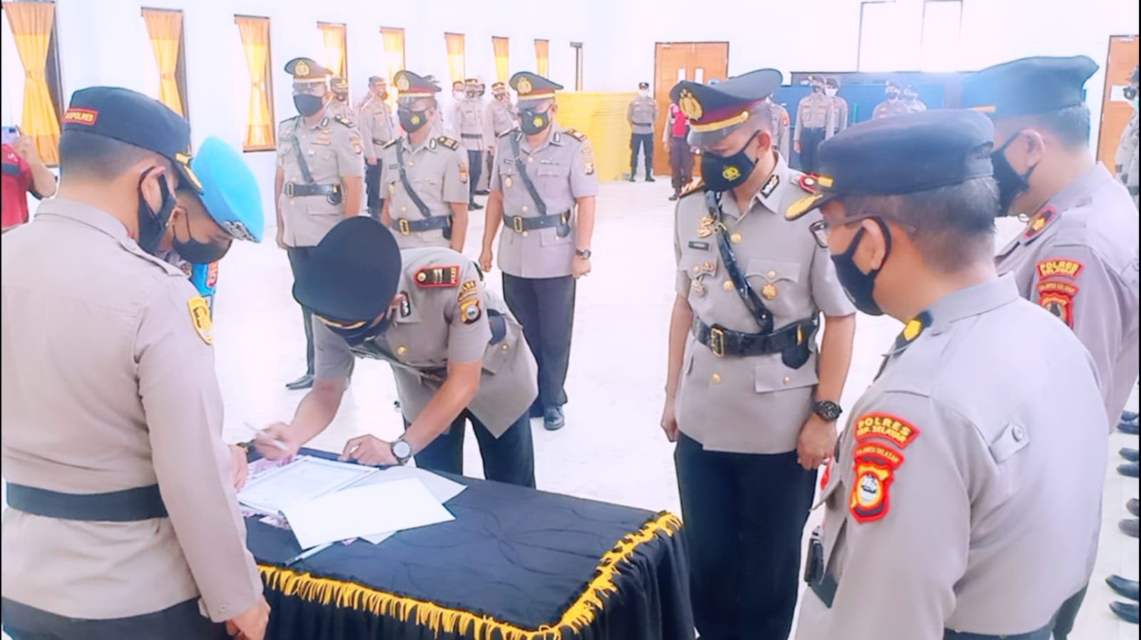 Serah terima jabatan yang dihadiri oleh Wakil Kepala Kepolisian Resor (Wakapolres), Kompol Abd Rahman, para Kepala Bagian (Kabag), Kepala Satuan (Kasat), Perwira dan Bintara serta beberapa undangan lainnya.