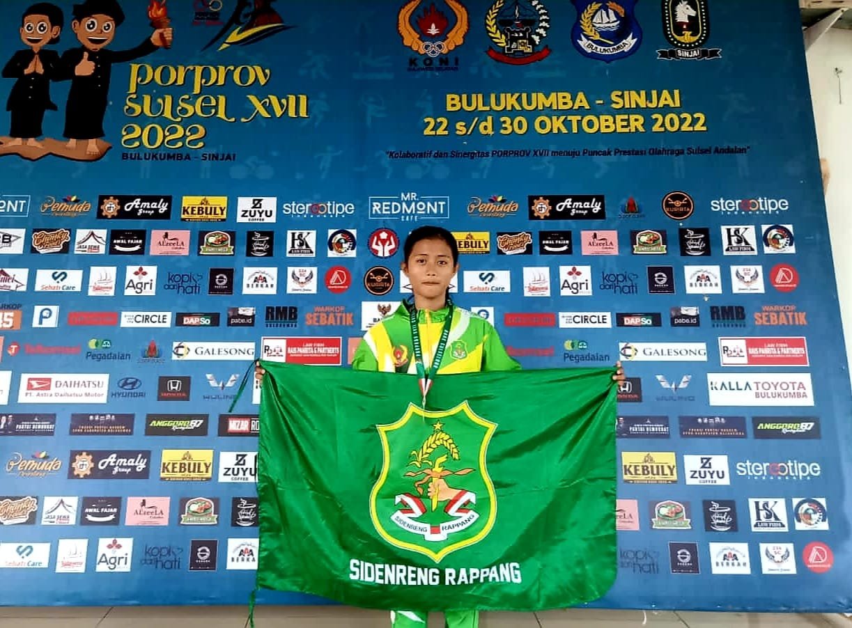 Taekwondo Putri Sidrap, Nurul Fitriani berhasil menyabet medali perak pada Pekan Olahraga Provinsi (Porprov) ke-17 tingkat Provinsi Sulawesi Selatan, Senin 24 Oktober 2022.